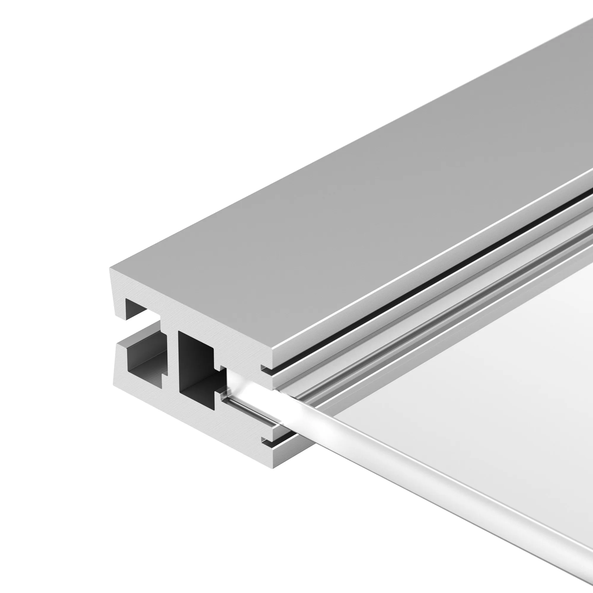 Алюминиевый анодированный профиль для монтажа и подсветки 6мм стекла (засветка до 15см) или PC (засветка до 60см). В комплекте талрепы 14шт на 2м профиля. Габаритные размеры (L×W×H): 2000x21,5x34,4 мм. Ширина площадки для ленты 11 мм. Заглушки и другие аксессуары приобретаются отдельно. Цена за 1 метр.