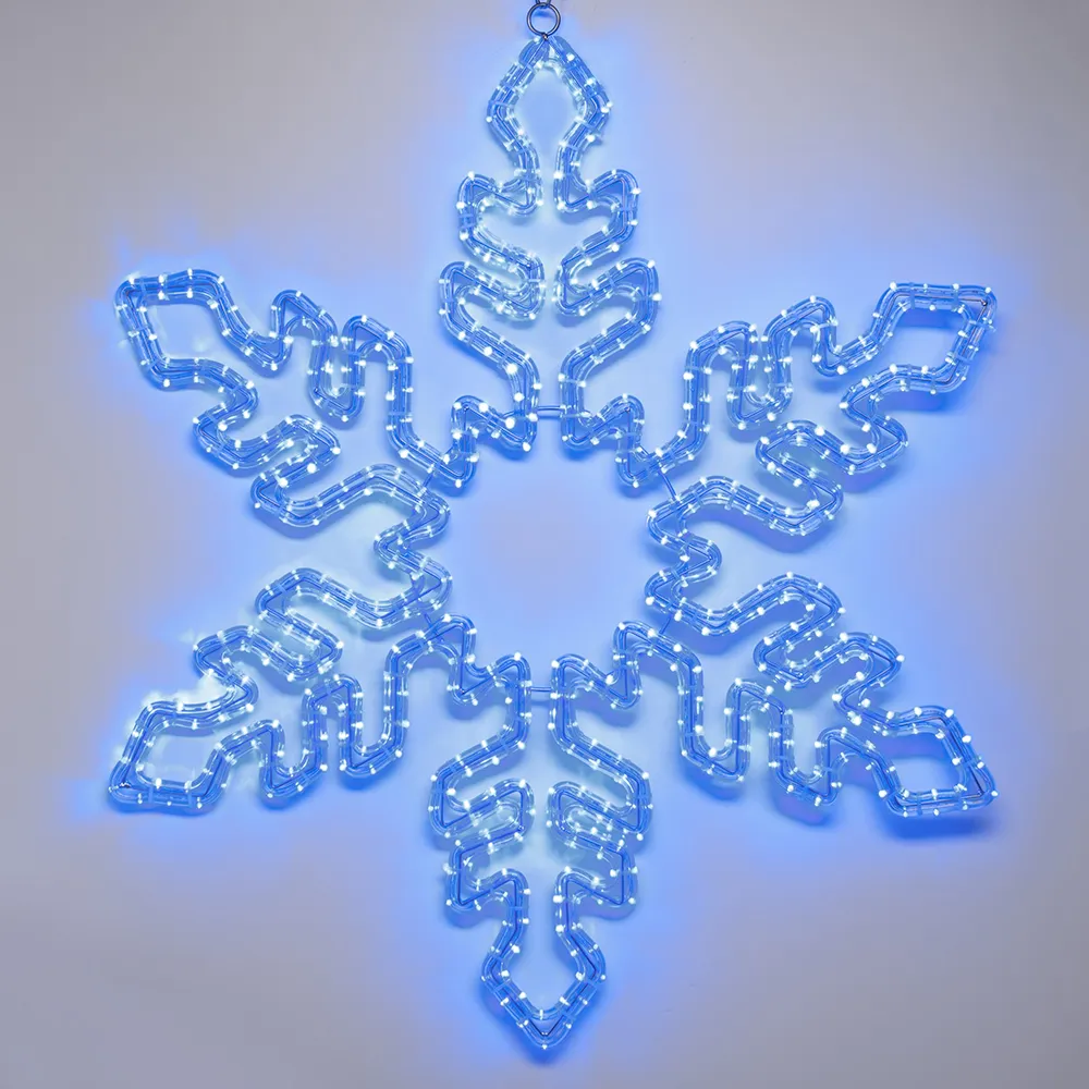 Светодиодная фигура СНЕЖИНКА. Размер 940x940 мм. Цвет светодиодов СИНИЙ, постоянное свечение. 648 светодиодов. Напряжение питания 230 В, потребляемая мощность 36 Вт, степень пылевлагозащиты IP65. Фигура укомплектована проводом питания для подключения к сети 230 В (без вилки питания).