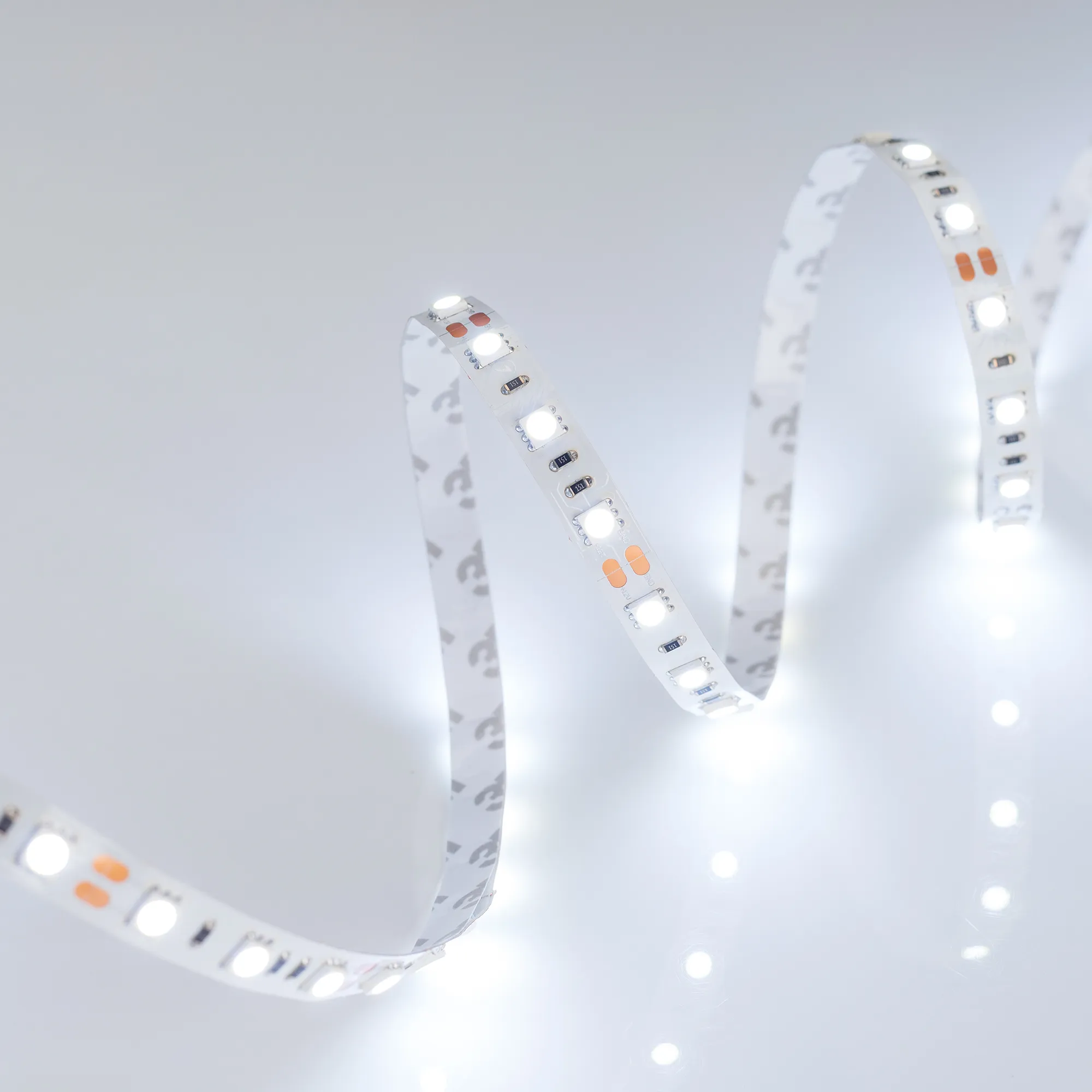 Гибкая лента LUX, светодиоды smd 5060, 60шт/м (300шт на 5м), белая плата 10мм, скотч 3М. Цвет ХОЛОДНЫЙ 7700-9600K. Питание 12V, мощность 14.4 Вт/м (72 Вт на 5м), угол 120°, цветопередача CRI>85. Размеры 5000х10x2.2мм. Мин.отрезок 50мм, 3шт светодиода. Пакет 5м. Цена за 1м.