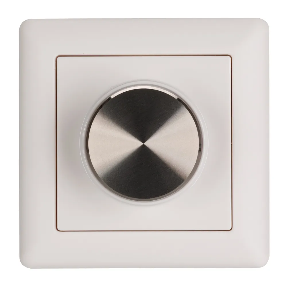 Встраиваемая роторная белая пластиковая панель для работы по протоколу DALI. Объекты управления: BROADCAST или группа 0-14 (15-я группа не управляется). Установка номера группы выполняется переключателями на корпусе. Подсветка регулятора во включенном состоянии. Питание от шины DALI (4 мА). Стандартная рамка входит в комплект поставки.