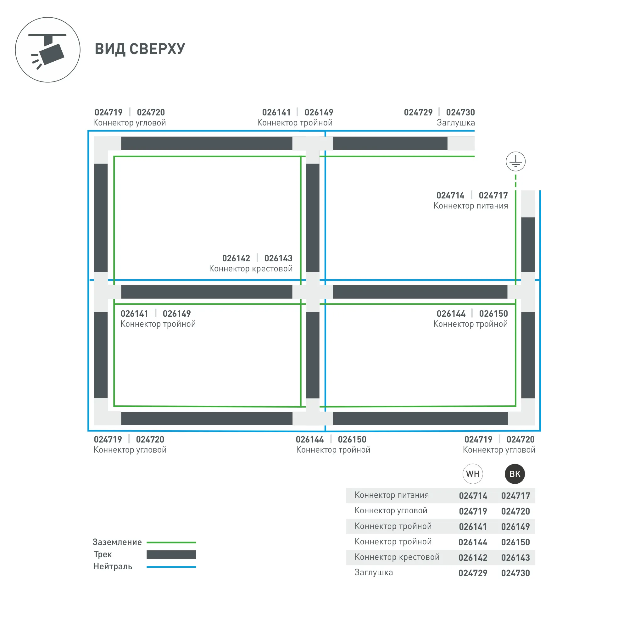 Направление соединений внутри/справа (определение необходимого коннектора происходит относительно контакта заземления системы). 166х99х33 мм с контактами, 99х66х33 мм без контактов. При использовании с треками и аксессуарами другой серии возможно отличие по цвету.