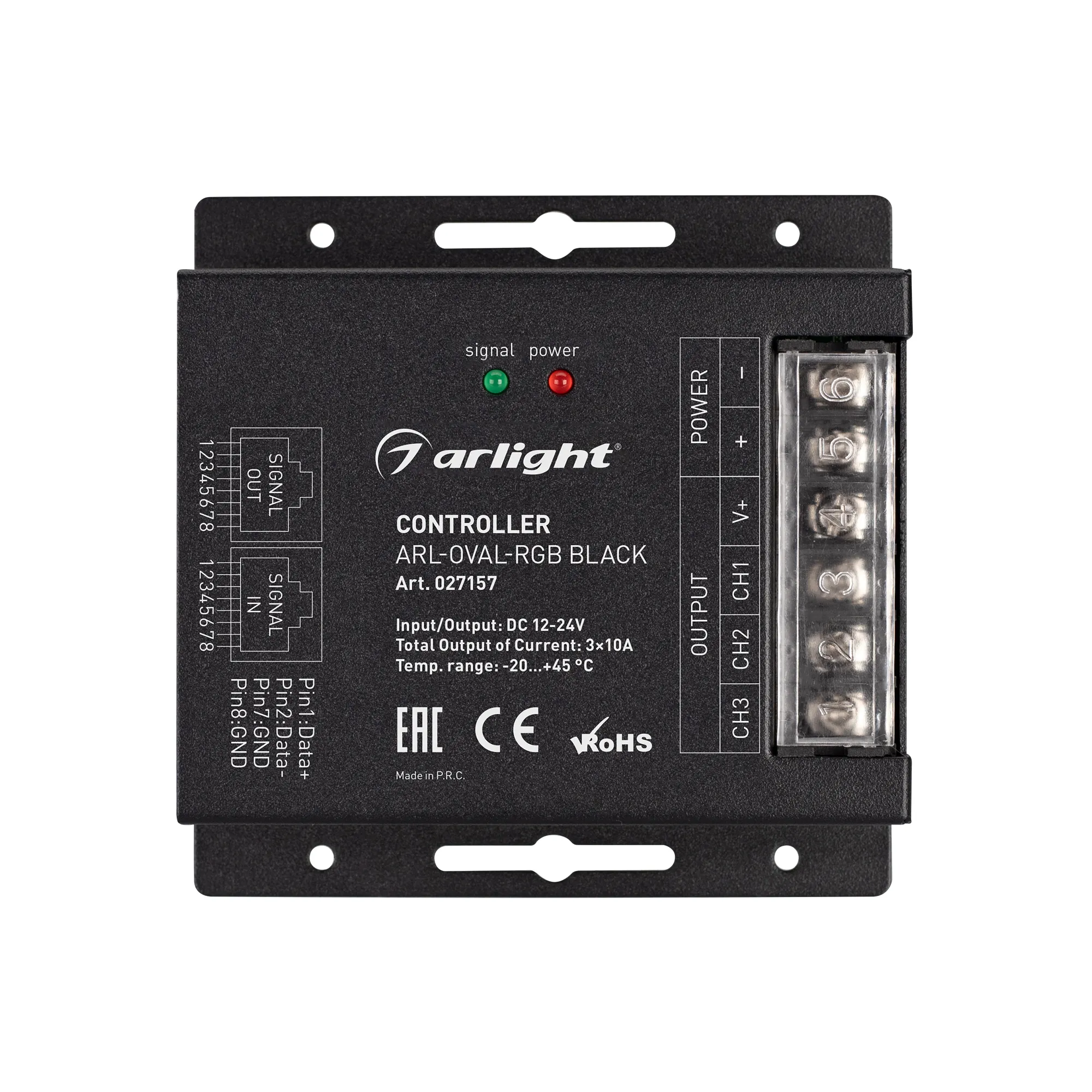 Контроллер ARL-OVAL-RGB Black (12-24V, 3x10A, ПДУ Овал, RF, RJ45) (Arlight, IP20 Металл, 3 года)
