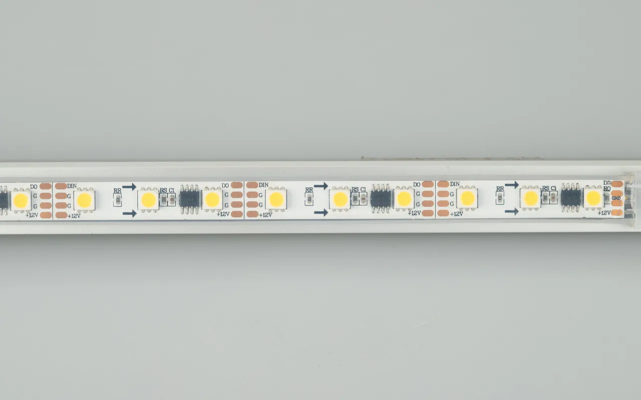 Гибкая герметичная БЕЛАЯ лента Бегущие огни в силиконовой трубке (IP66), со СКОТЧЕМ 3M на обратной стороне, с драйвером 1804, встроенный в ленту контроллер с циклическим автозапуском 17 программ (Auto mode) и подкл-ем внеш. контроллера. Длина 5м, 300шт LED DayWhite 5060, 20 pixel/m (1 pixel = 3 LED). Питание 12V, ном. мощн. 10 Вт/м (динамич. режим), макс. мощн-ть 13,2 Вт/м (статический белый цвет). Ширина 12 мм. Герметичные КРУГЛЫЕ коннекторы.