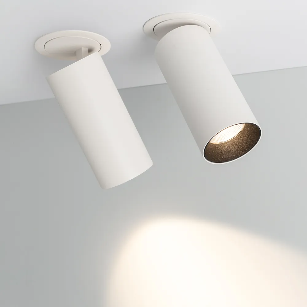 Встраиваемый откидной светильник 8Вт, белый круглый корпус, черная вставка, металл.