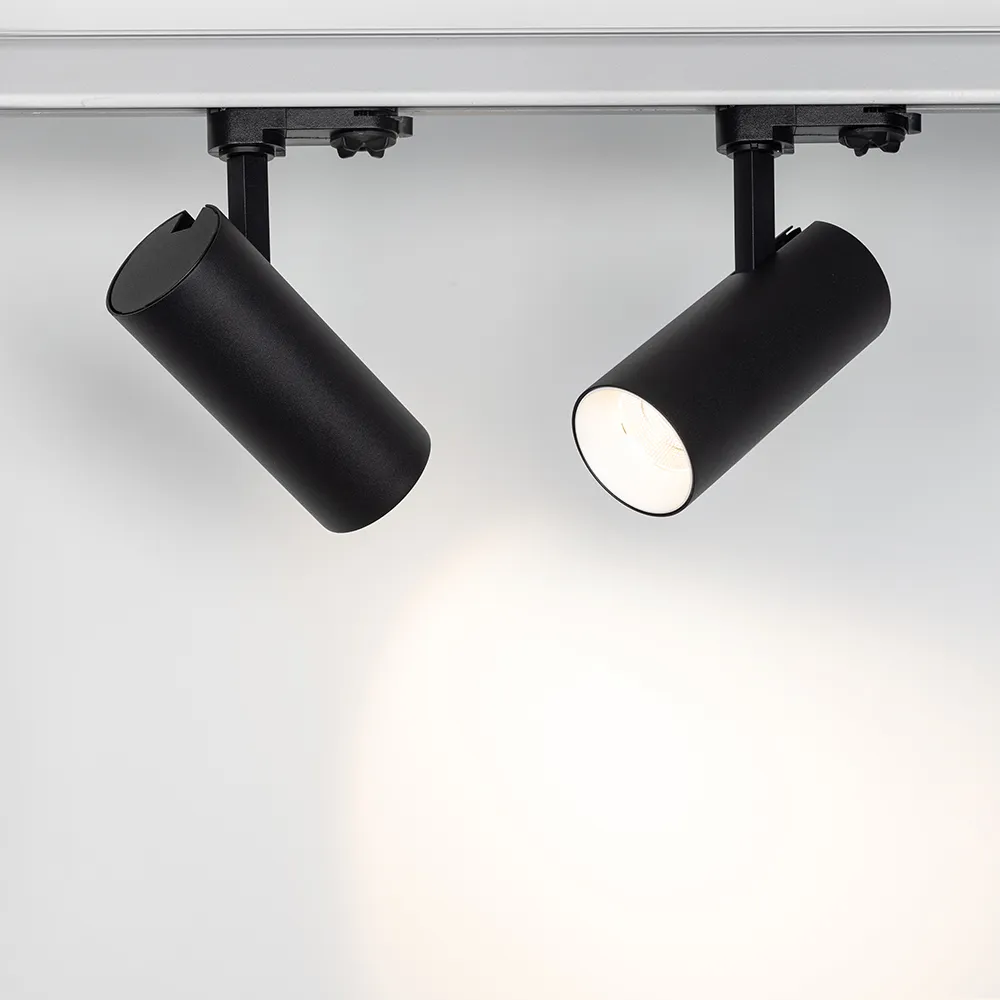 Трековый светильник 8Вт, черный круглый корпус, белая вставка, металл.