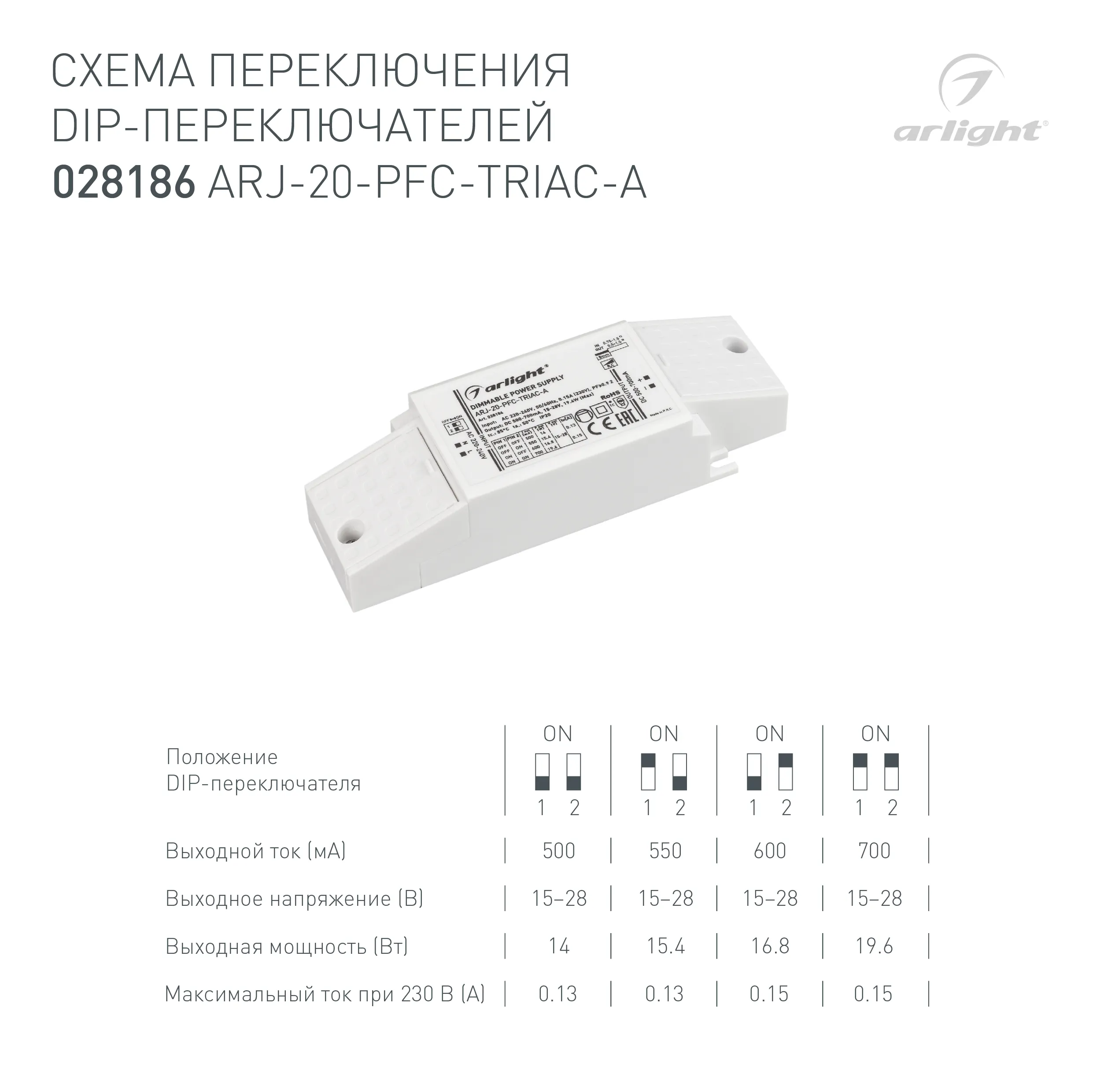 Блок питания ARJ-20-PFC-TRIAC-A (20W, 500-700mA) (Arlight, IP20 Пластик, 5 лет)