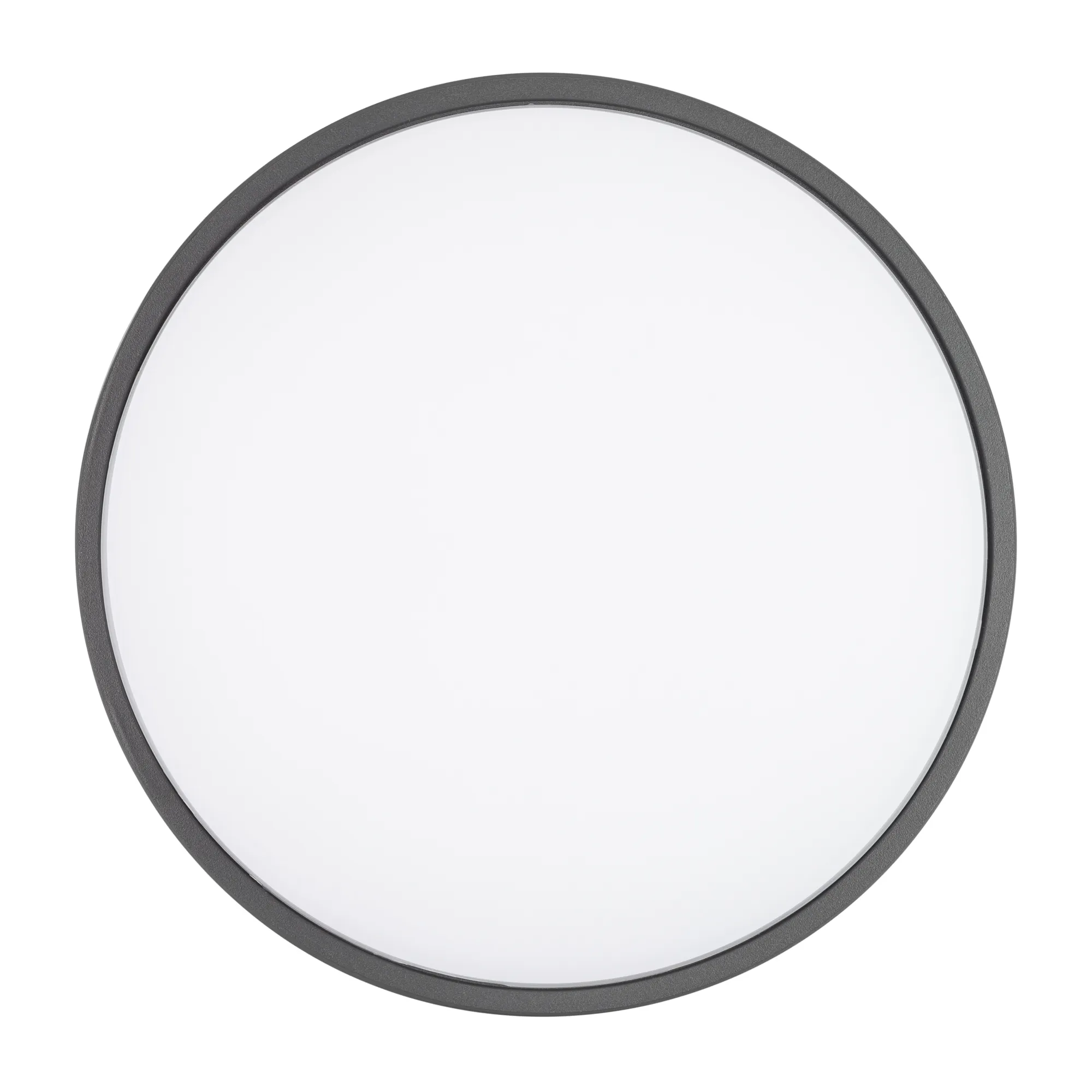 Накладной светильник 25Вт, серый алюминиевый корпус, матовый рассеиватель из поликарбоната. Цвет ТЕПЛЫЙ БЕЛЫЙ 3000K, св.поток 2170лм, CRI(Ra)>80, угол 110°. Размер Ф240x45мм. IP54. Питание AC220-240V, 25Вт, встроенный драйвер.