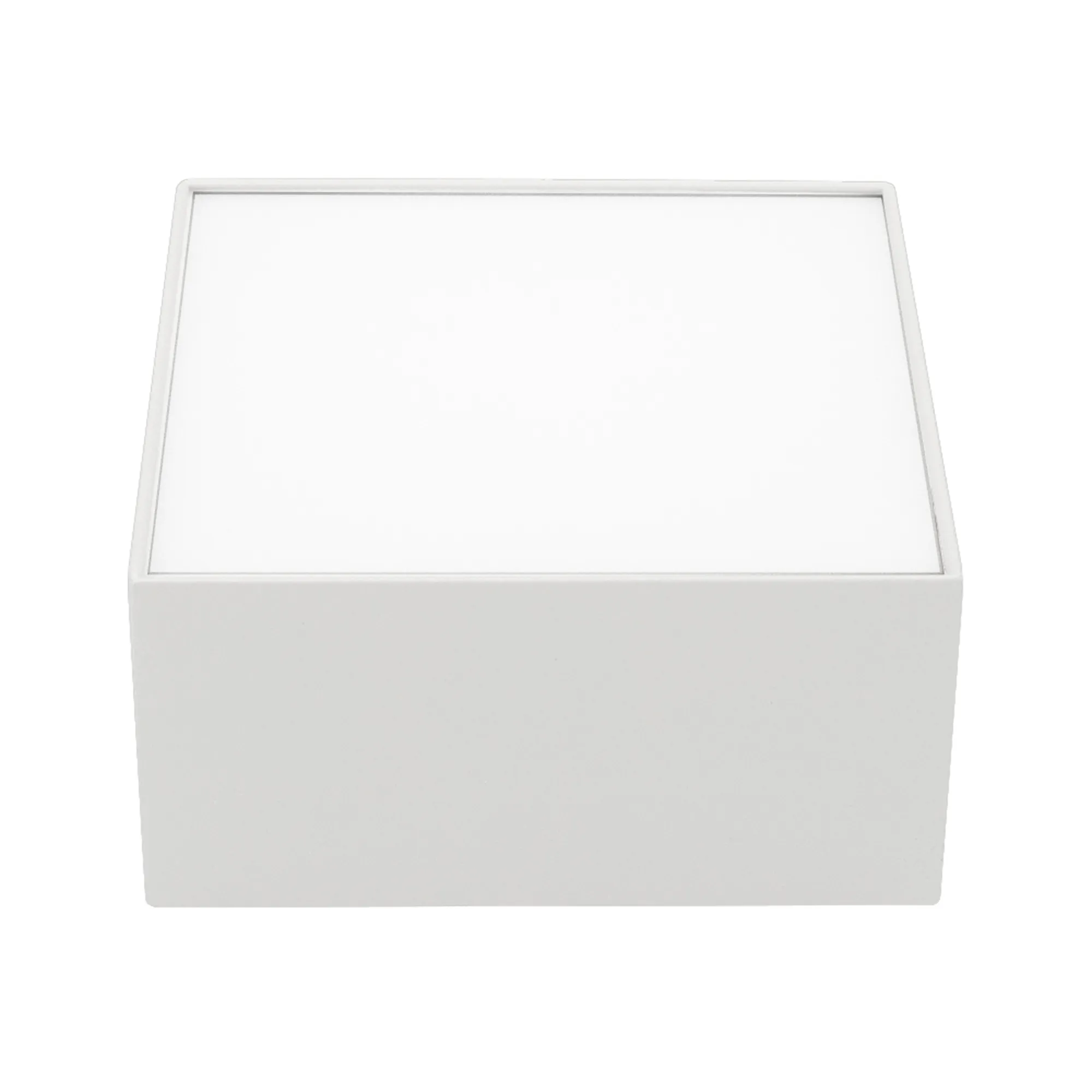 Накладной светильник 12 Вт, белый RAL 9003 квадратный корпус. Цвет ТЕПЛЫЙ БЕЛЫЙ 3000 K, св.поток 715лм, CRI(Ra)>80, угол 120°. Размер (ДхШхВ) 120x120x55 мм. Питание AC 176-240 В, 12 Вт, драйвер встроенный (250мА, 25-40В).