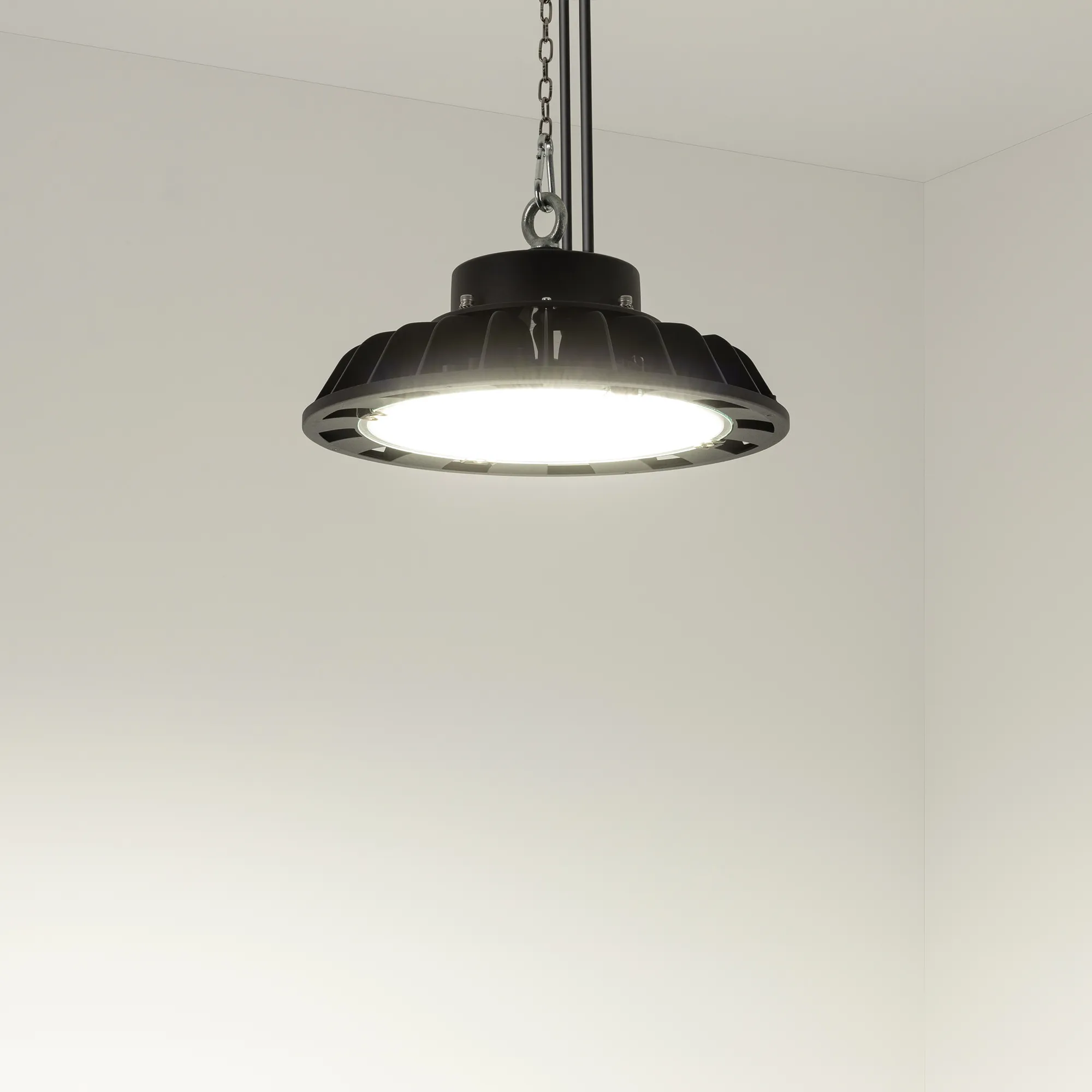 Поставка под заказ от 200 шт. Светильник для освещения складских и промышленных помещений. Мощность 120W, напряжение питания AC 220-240V/50Hz.CRI80. Тип светодиодов SMD2835, с групповой оптической линзой. Цвет свечения ДНЕВНОЙ 5000K, световой поток 21600 Lm, угол рассеивания 120°. Цвет корпуса серый, темперированное стекло, степень влагозащиты IP65. Диаметр 295мм. Рым-болт в комплекте. Диммирование 0-10V.