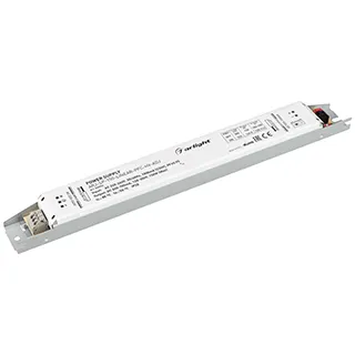 Регулируемый источник тока без гальванической развязки для светильников и мощных светодиодов. Входное напряжение 220-240 VAC. Выходные параметры: 180-300В (500мА), 128-214В (700мА), максимальная мощность 150 Вт. Встроенный PFC >0,95. Негерметичный металлический корпус IP 20. Габаритные размеры длина 290 мм, ширина 30 мм, высота 21 мм. Гарантийный срок 5 лет.
