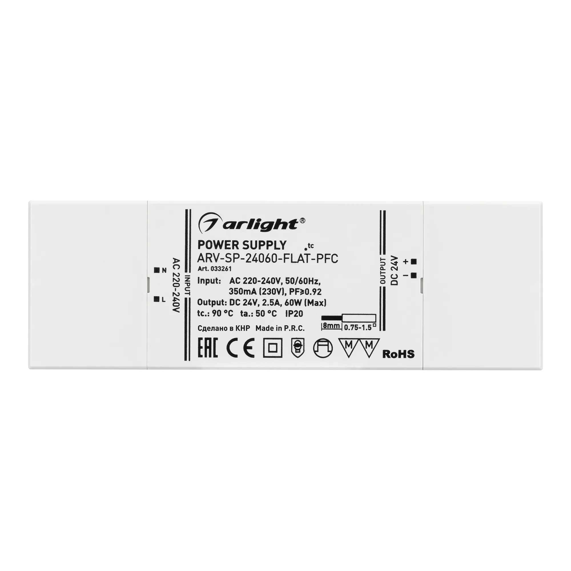 В магазине Мельковский Свет Вы можете купить "Блок питания ARV-SP-24060-FLAT-PFC (24V, 2.5A, 60W) (Arlight, IP20 Пластик, 5 лет)"