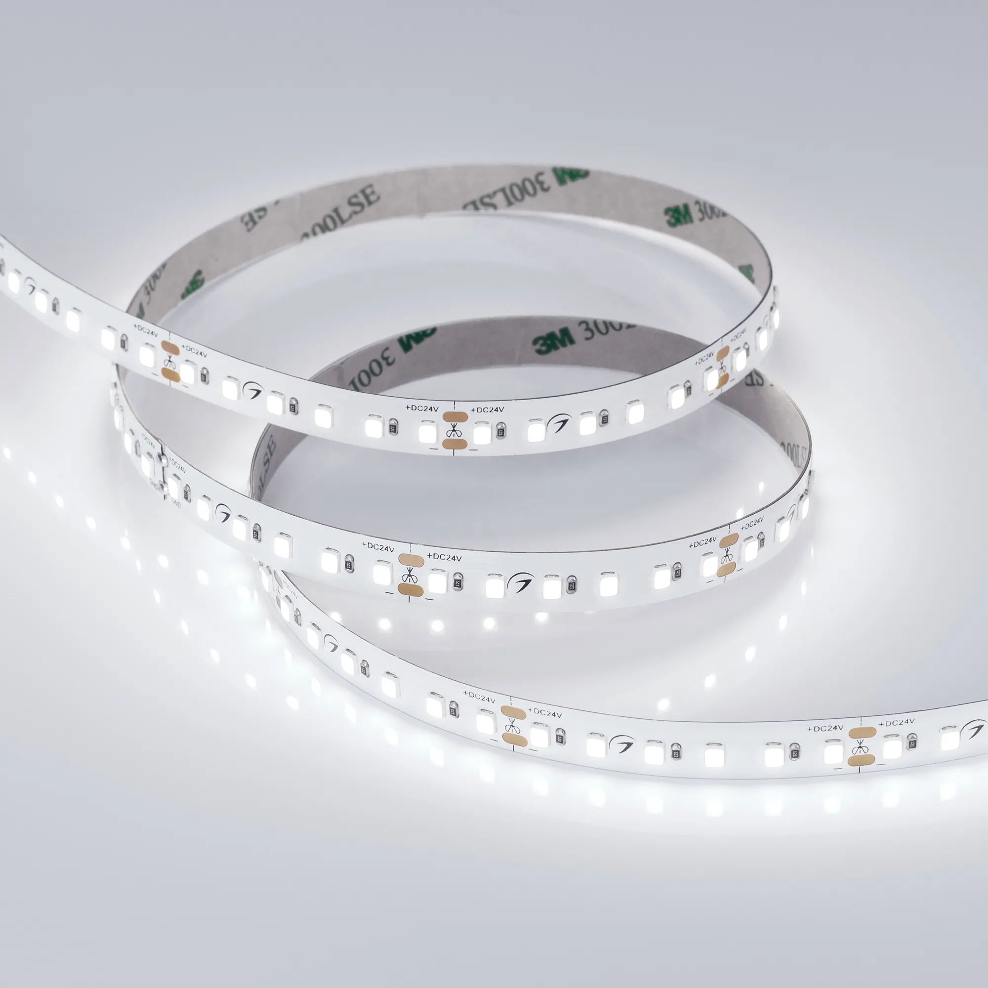 Светодиодная лента повышенной прочности TWIST серии A120. Светодиоды SMD 2835, 120 шт/м, белая плата шириной 10 мм, скотч 3M. Цвет БЕЛЫЙ 6000K, индекс цветопередачи CRI>90, угол 120°. Питание 24 В, мощность 10 Вт/м (50 Вт на 5 м). Размеры 5000x10x1.5 мм. Мин. отрезок 50 мм, 6 светодиодов. Цена за 1 м.