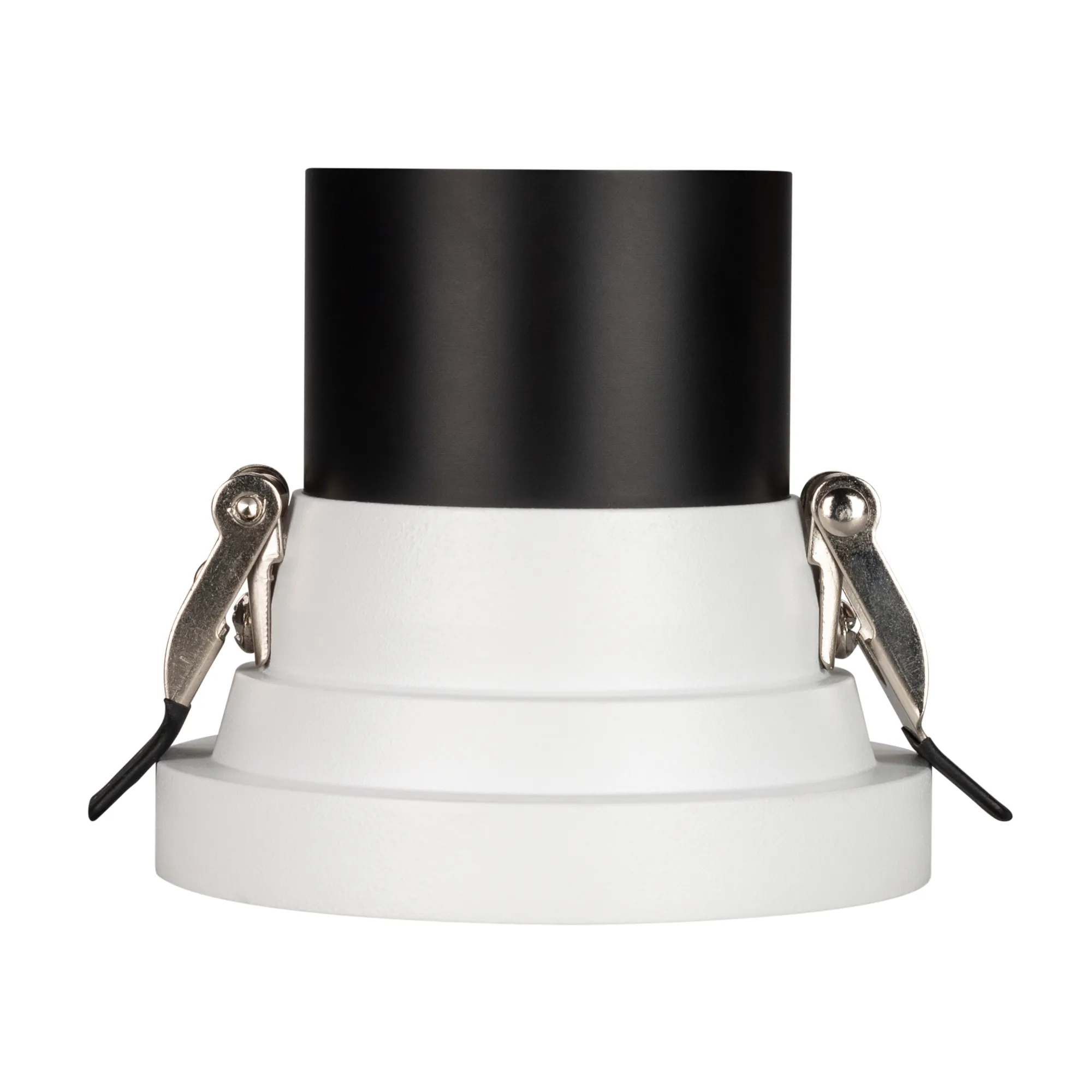 Встраиваемый светильник даунлайт. Мощность 10 Вт, св. поток 875 лм, 88 лм/Вт, теплый 3000 K, CRI>90, UGR<16, угол 38°, напряжение питания 230 В. Белый круглый корпус из алюминия, степень защиты IP20. Размер: диаметр 82 мм, высота 76 мм. Монтаж встраиваемый, установочное отверстие: диаметр 76 мм. Драйвер 20-40 В, 250 мА, пульсация <2%.