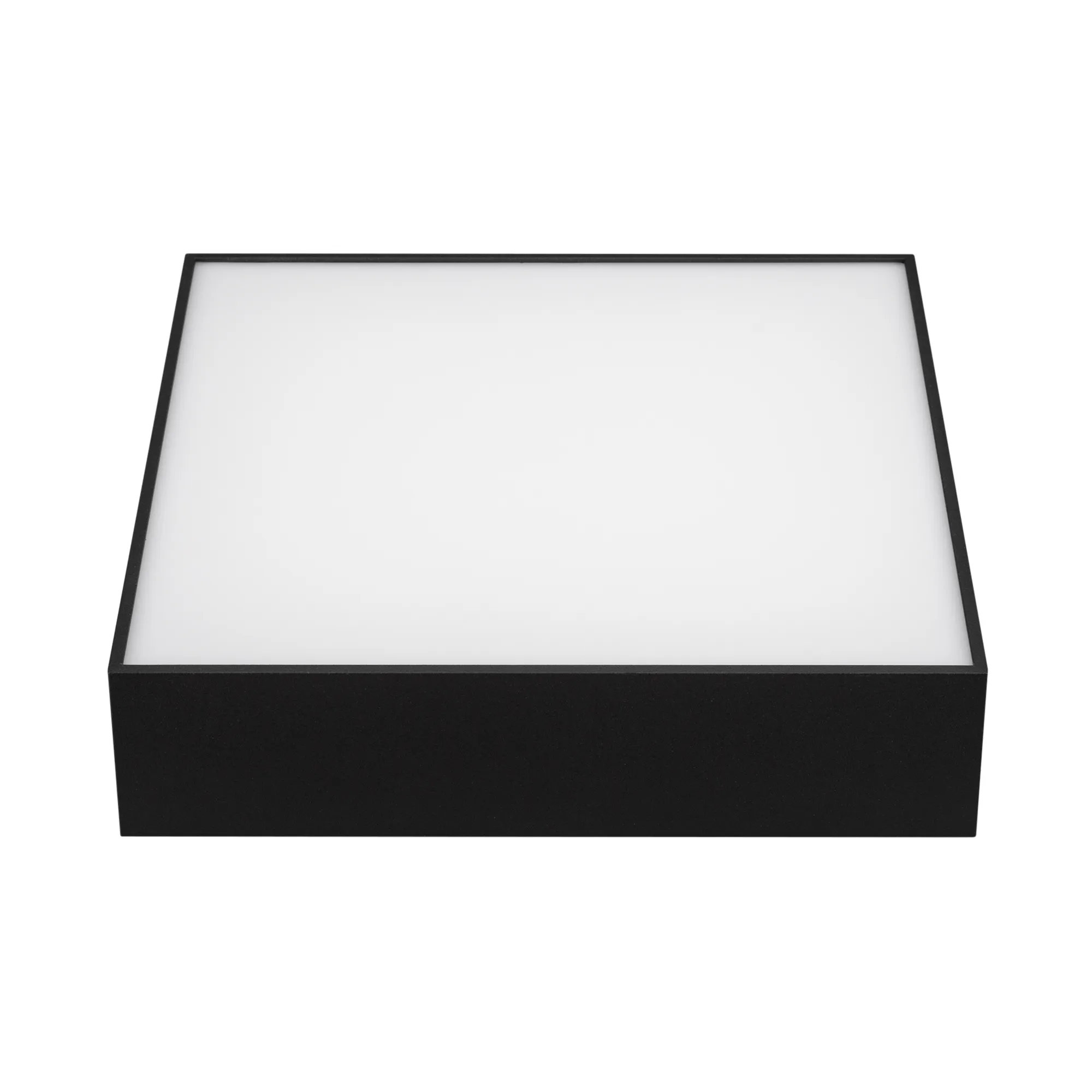 Поставка под заказ от 100 шт. Накладной светильник. Мощность 25 Вт, св. поток 1440-1900 лм, 76 лм/Вт, теплый 3000 K, CRI>90, угол 120°, напряжение питания 230 В. Черный квадратный корпус из алюминия, экран PC, степень защиты IP40. Размер: длина 250 мм, ширина 250 мм, высота 59 мм. Монтаж накладной. Драйвер 27-45 В, 600 мА, пульсация <5%.