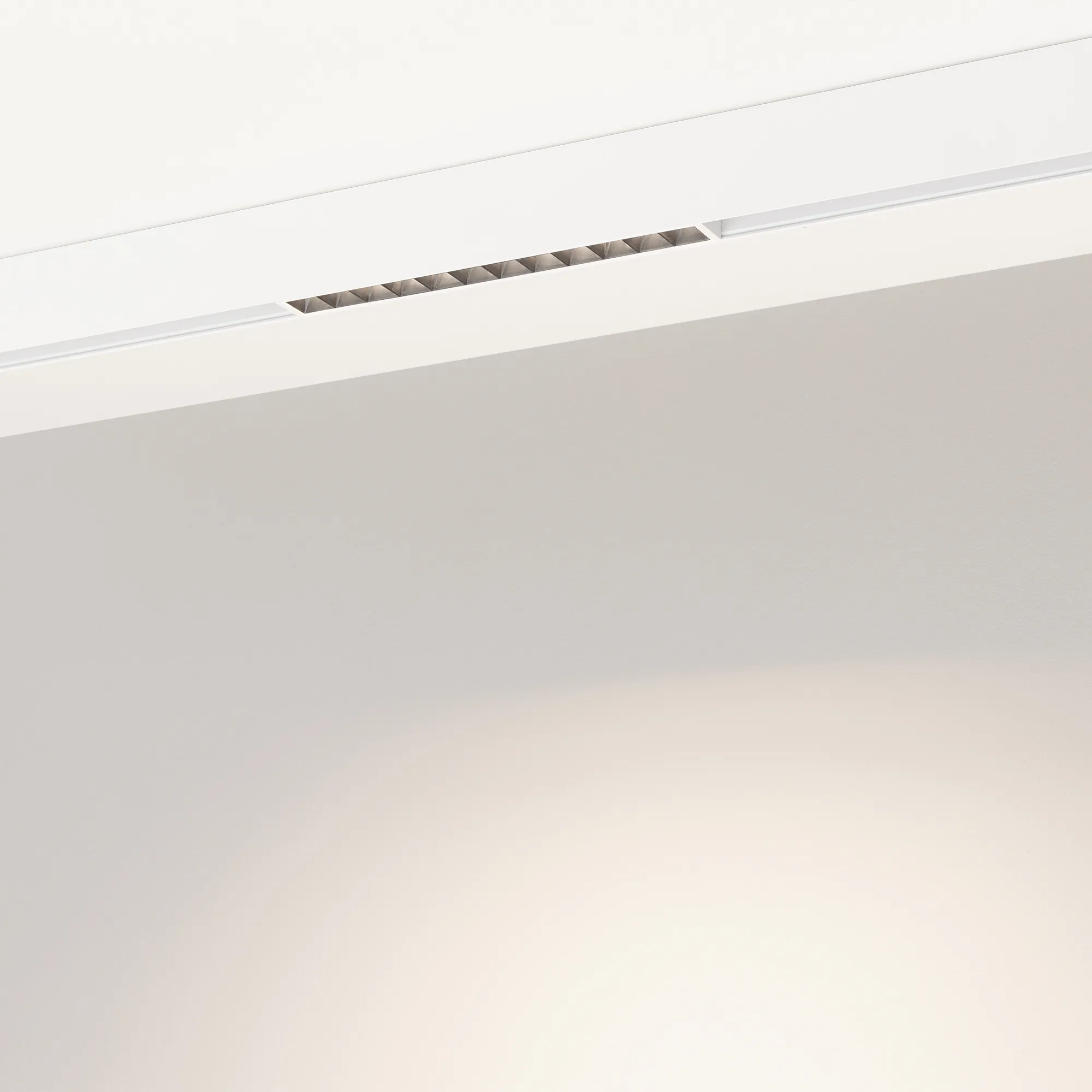 Светильник для магнитных треков MAG-ORIENT шириной 26 мм с управлением DALI. Мощность 8 Вт, св. поток 460 лм, 58 лм/Вт, дневной 4000 K, CRI>90, угол 24°, напряжение питания 48 В. Белый прямоугольный корпус из металл, экран поликарбонат, степень защиты IP20. Размер: длина 235 мм, ширина 22 мм, высота 42 мм. Монтаж на трек MAG-ORIENT. Пульсация <1%.