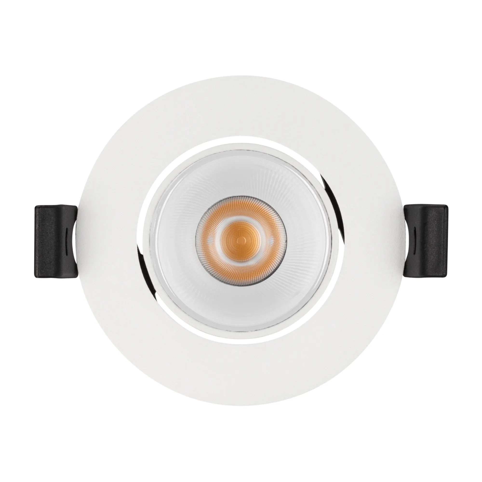Встраиваемый поворотный светильник даунлайт. Мощность 8.4 Вт, св. поток 800 лм, 95 лм/Вт, дневной 4000 K, CRI>90, UGR<16, угол 32°, напряжение питания 230 В. Белый круглый корпус из алюминия, белый ГЛЯНЦЕВЫЙ отражатель из PMMA, степень защиты IP20. Размер: диаметр 82 мм, высота 51 мм. Монтаж встраиваемый, установочное отверстие: диаметр 75 мм. Драйвер 21-42 В, 200 мА, пульсация <2%.