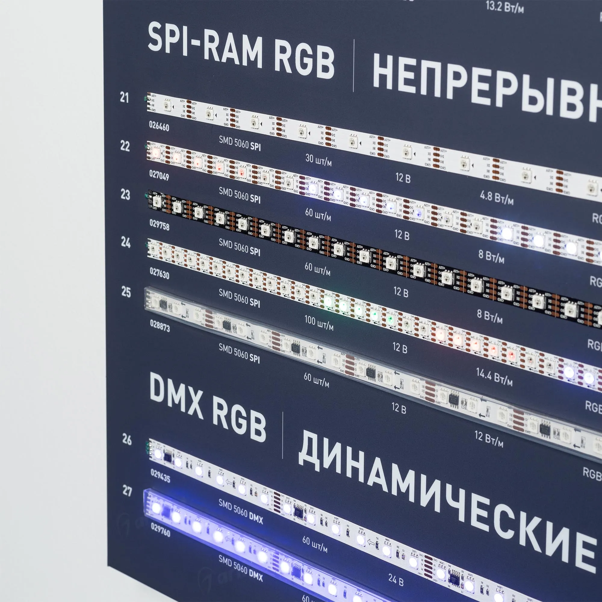 В магазине Мельковский Свет Вы можете купить "Стенд Ленты Мультицветные RGB RT-LUX-E4-1760x600mm (v.2, DB 3мм, пленка, подсветка) (Arlight, -)"