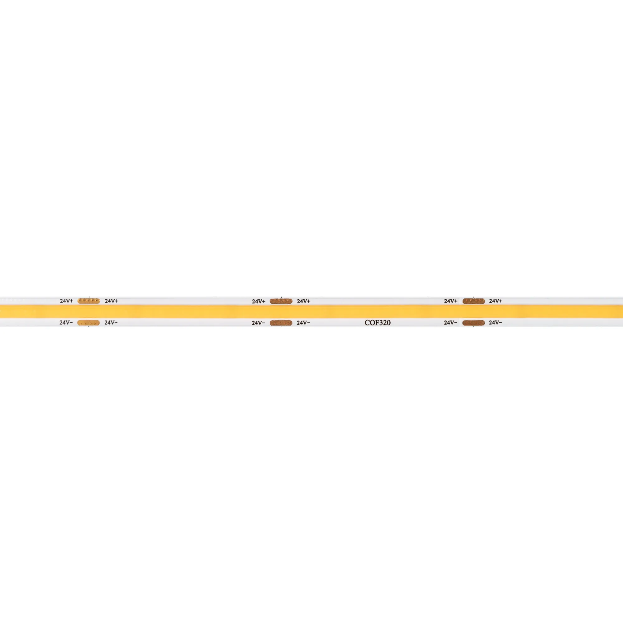 Светодиодная лента сплошного свечения COB серии X320. Светодиоды CSP, 320 шт/м, белая плата шириной 8 мм, скотч 3M. Цвет ДНЕВНОЙ 4000K, индекс цветопередачи CRI>90, угол 175°. Питание 24 В, мощность 8 Вт/м (40 Вт на 5 м). Размеры 5000х8х2 мм. Мин. отрезок 50 мм. Цена за 1 м.