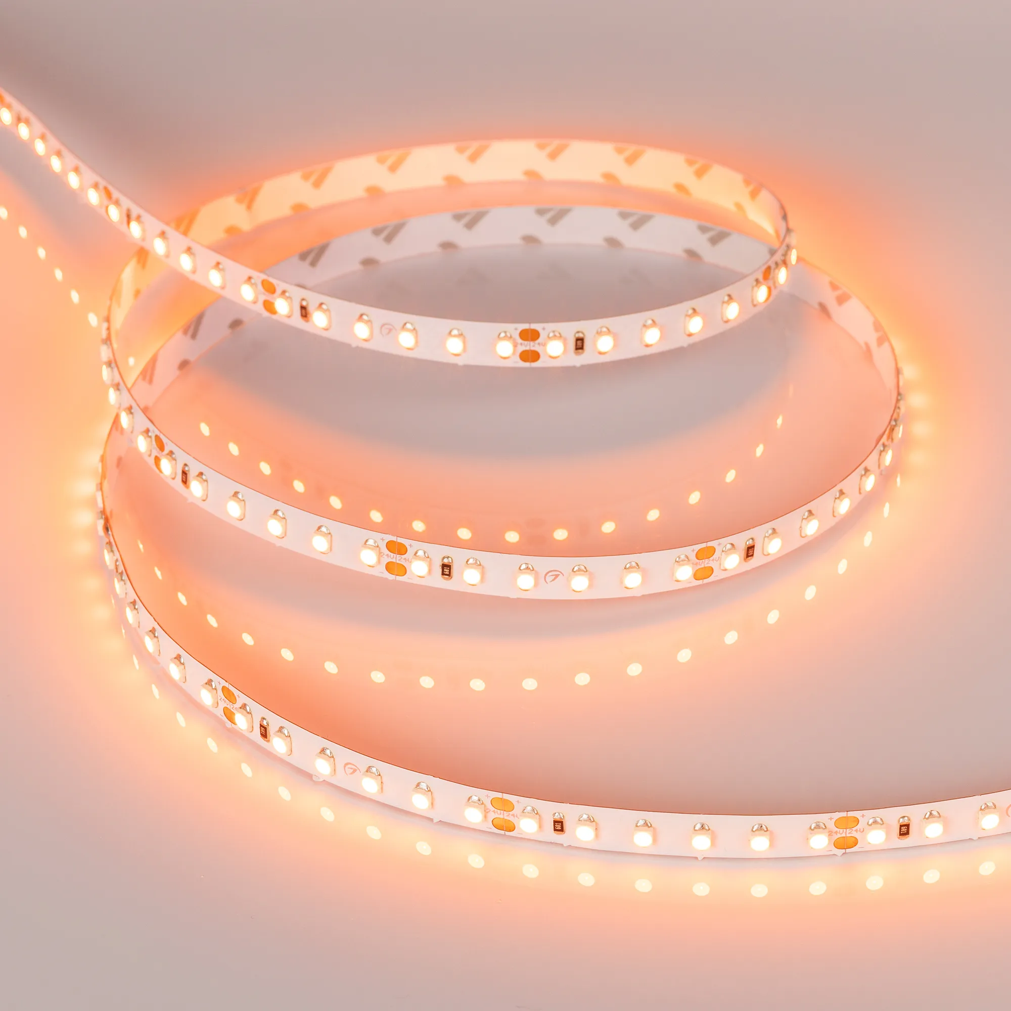 Гибкая лента LUX, светодиоды 2X smd 3528, 120шт/м (600шт на 5м), белая плата 8мм, скотч 3М. Цвет ОРАНЖЕВЫЙ. Питание 24В, мощность 9,6 Вт/м (48 Вт на 5м), угол 120°. Размеры 5000х8х1,8мм. Мин.отрезок 50мм (6 LED). Цена за 1м.