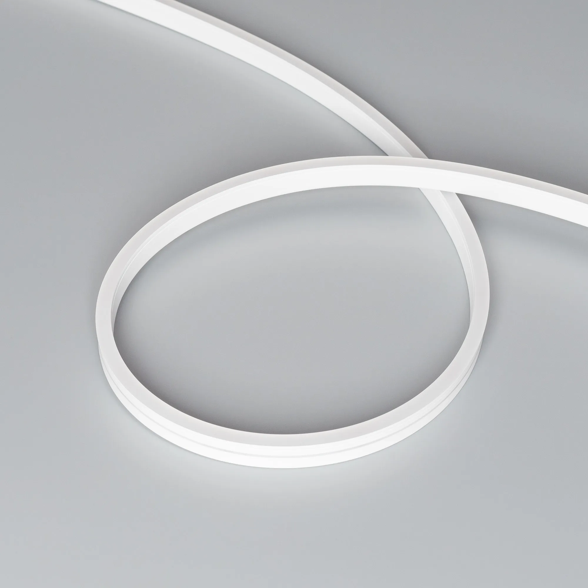 Гибкая герметичная лента (неон серии MOONLIGHT), сечение 6×12 мм. Светодиоды SMD 2835 120 шт/м. Цвет свечения ТЕПЛЫЙ БЕЛЫЙ (2700 К), индекс цветопередачи CRI>90, световой поток 280 лм/м, угол излучения 112°. Мощность 9.6 Вт/м, питание 24 В. Класс пылевлагозащиты IP65. Размеры 5000×6×12 мм. Мин. отрезок 50 мм. Горизонтальный изгиб SIDE, минимальный радиус изгиба 30 мм. Вывод кабеля с двух сторон. Катушка 5 м. Цена за 1 м. Гарантия 3 года.