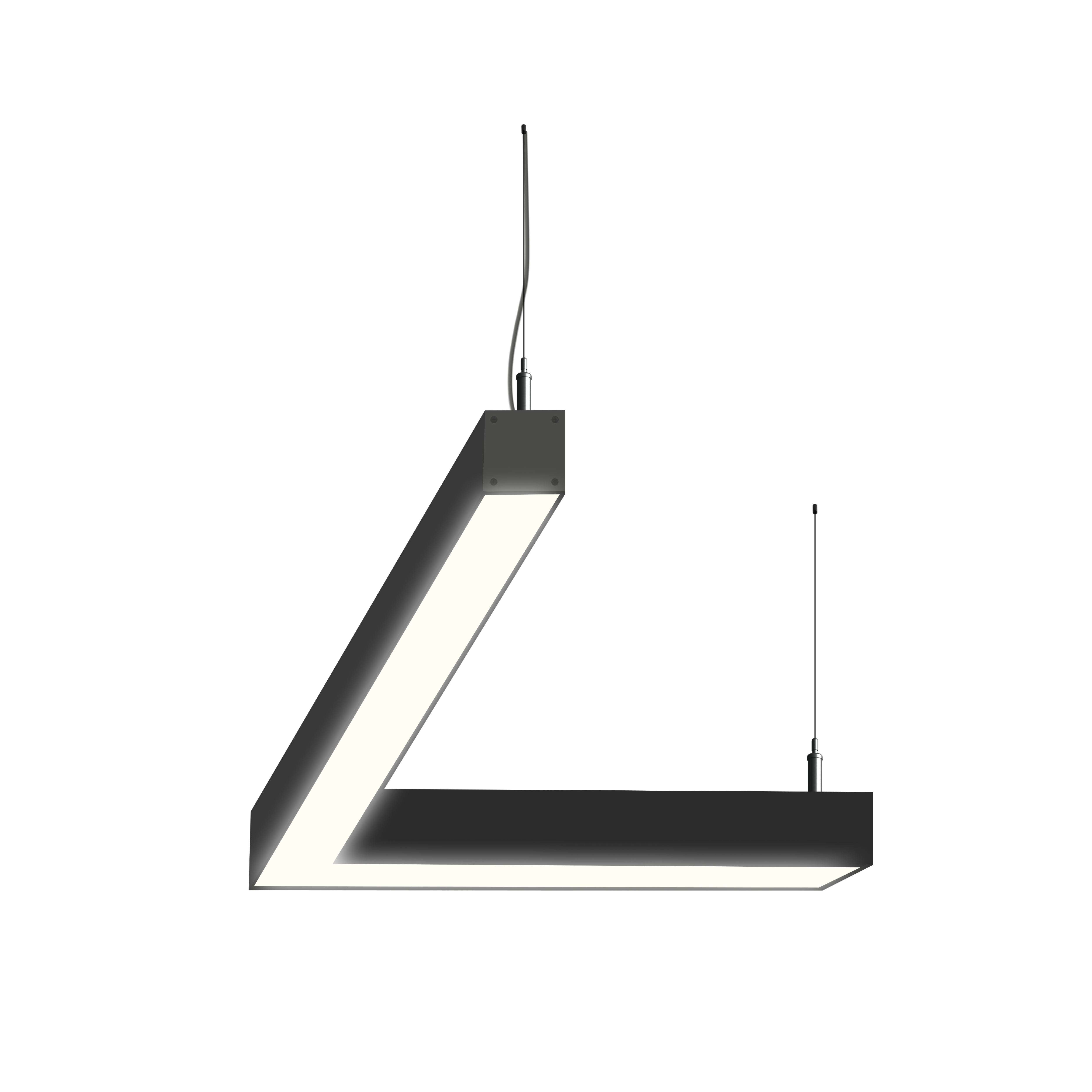 Светодиодный фигурный светильник MS-CORN L-образный 45гр. размер профиля 50х50мм длиной 500х500мм мощностью 40W. Светильник собирается в алюминиевом корпусе с матовым рассеивателем, который дает равномерную засветку по всей площади.