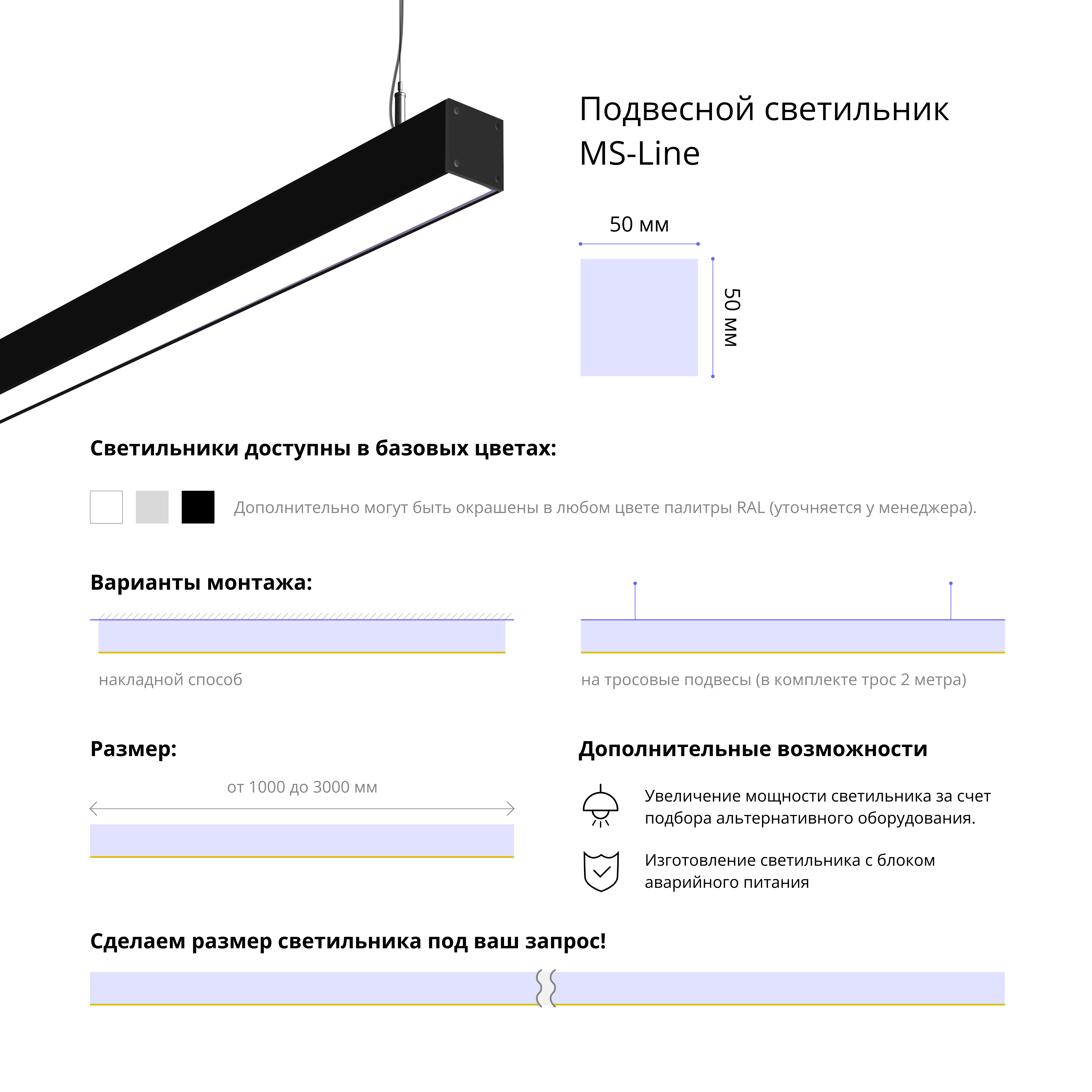 Подвесной светильник MS-LINEAR Линейный 50x50 300…