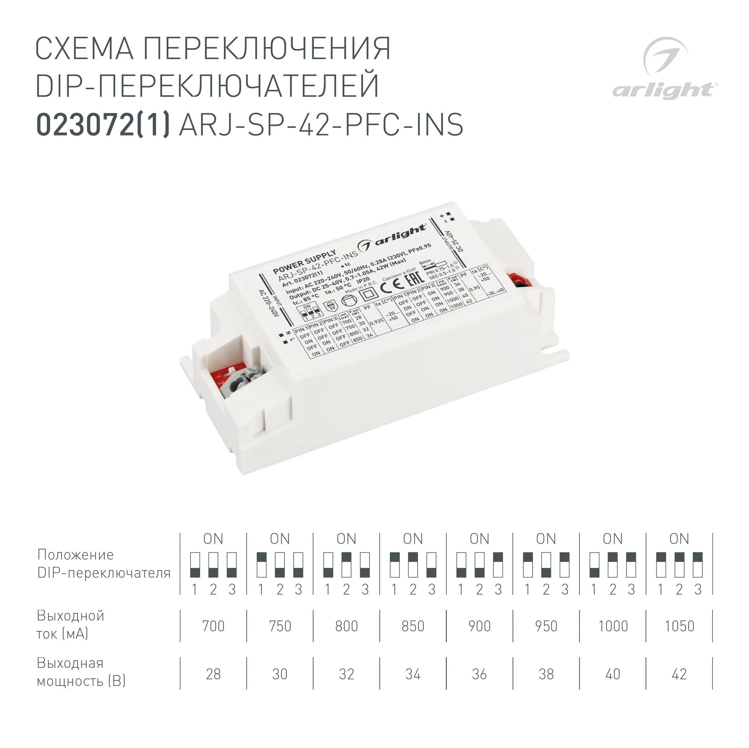 Наши специалисты знают все о продукции Arlight и с радостью помогут Вам выбрать комплектующие к товару "Блок питания ARJ-SP-42-PFC-INS (42W, 25-40V, 0.7-1.05A) (Arlight, IP20 Пластик, 5 лет)", или другие товары из раздела "регулировка DIP-переключателем".
