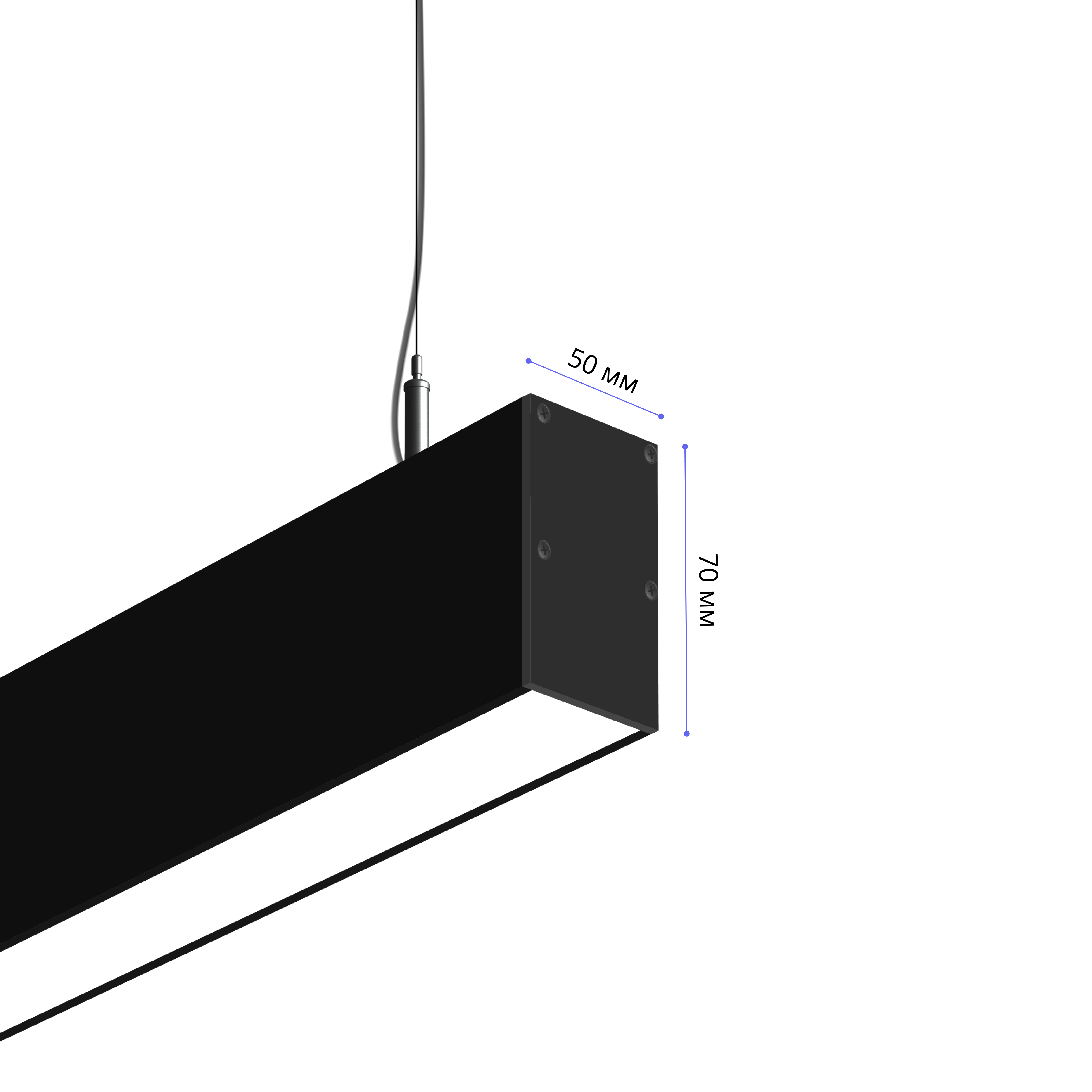 Подвесной светильник MS-LINEAR Линейный размер профиля 70х50мм длиной 3000мм мощностью 45W. Светильник собирается в алюминиевом корпусе с матовым рассеивателем, который дает равномерную засветку по всей площади.