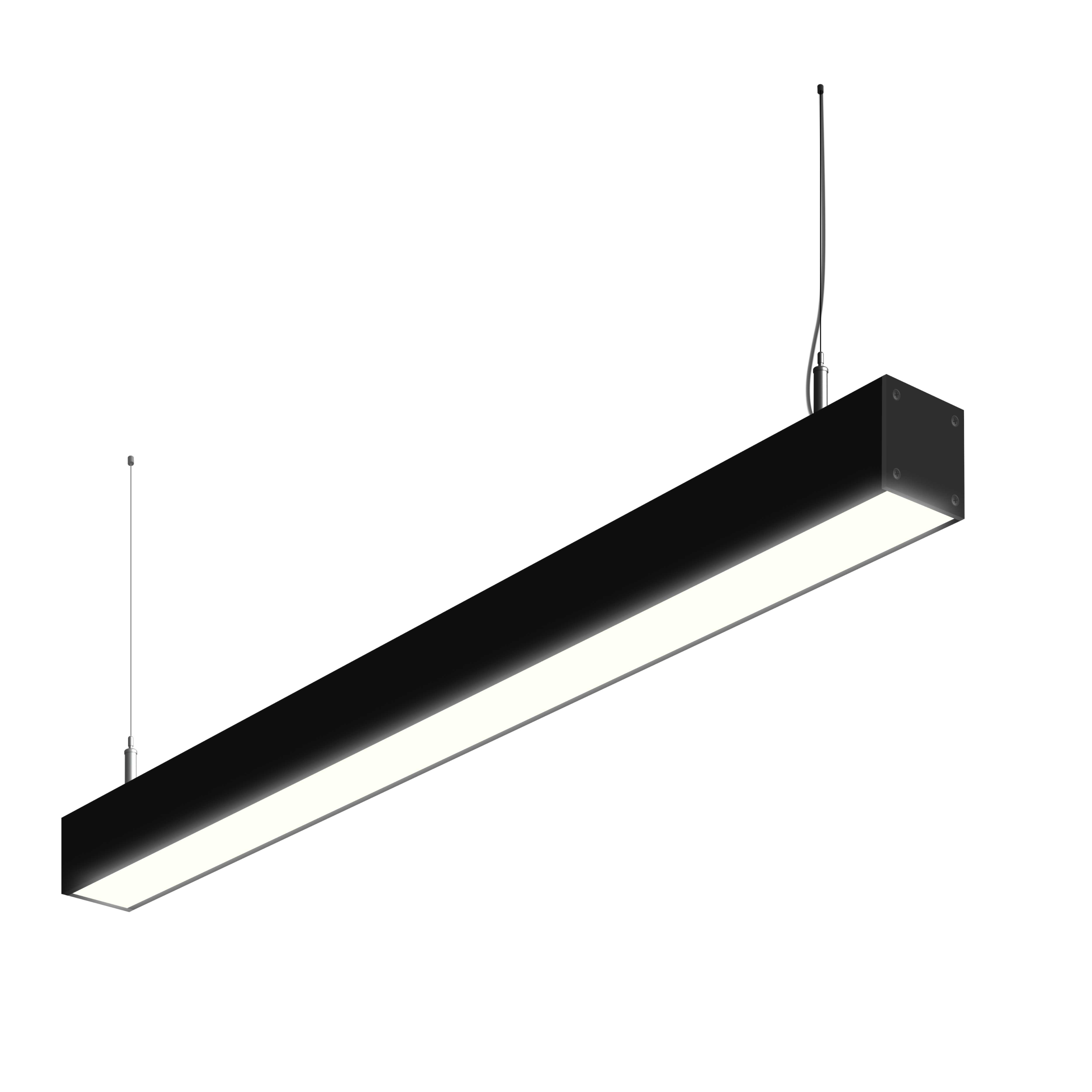Подвесной светильник MS-LINEAR Линейный размер профиля 77х74мм длиной 2500мм мощностью 50W. Светильник собирается в алюминиевом корпусе с матовым рассеивателем, который дает равномерную засветку по всей площади.