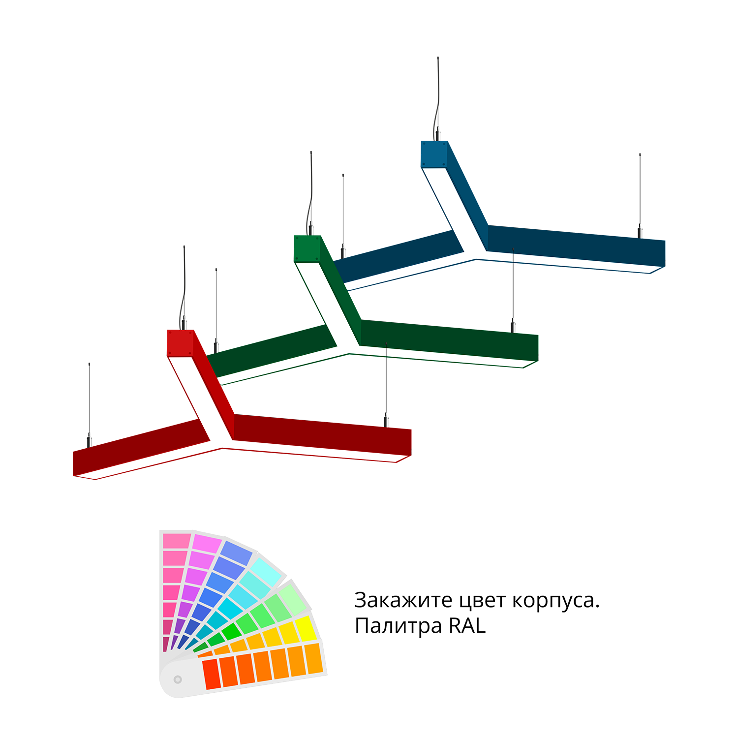 Cветодиодный фигурный светильник MS-TRINITY Y-образный размер профиля 50x50мм длиной 3х750мм мощностью 40W. Светильник собирается из алюминиевого основния с матовым рассеивателем, который дает равномерную засветку по всей площади.