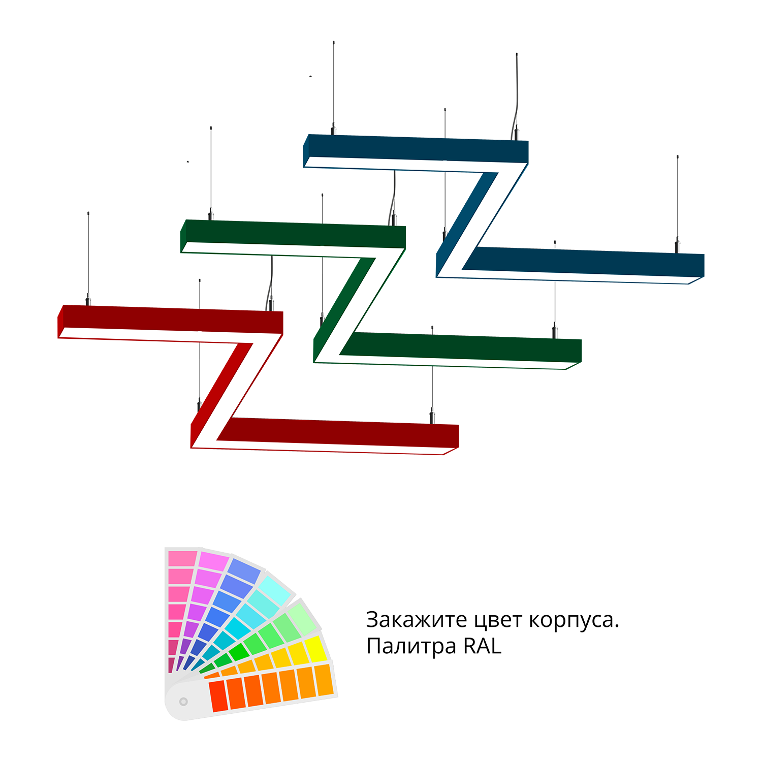 Cветодиодный фигурный светильник MS-ZIG Зигзаг размер профиля 50x50мм длиной 6х500мм мощностью 60W. Светильник собирается из алюминиевого основния с матовым рассеивателем, который дает равномерную засветку по всей площади.