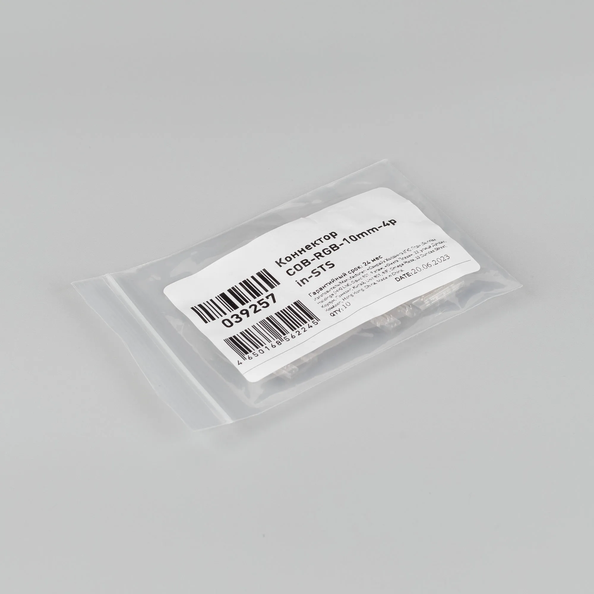 Коннектор STS для соединения двух отрезков RGB лент COB шириной 10 мм. Материал - прозрачный пластик. Максимальный допустимый ток 3 А, максимальное напряжение 24 В. Цена за 1 шт. Пакет 10 шт.