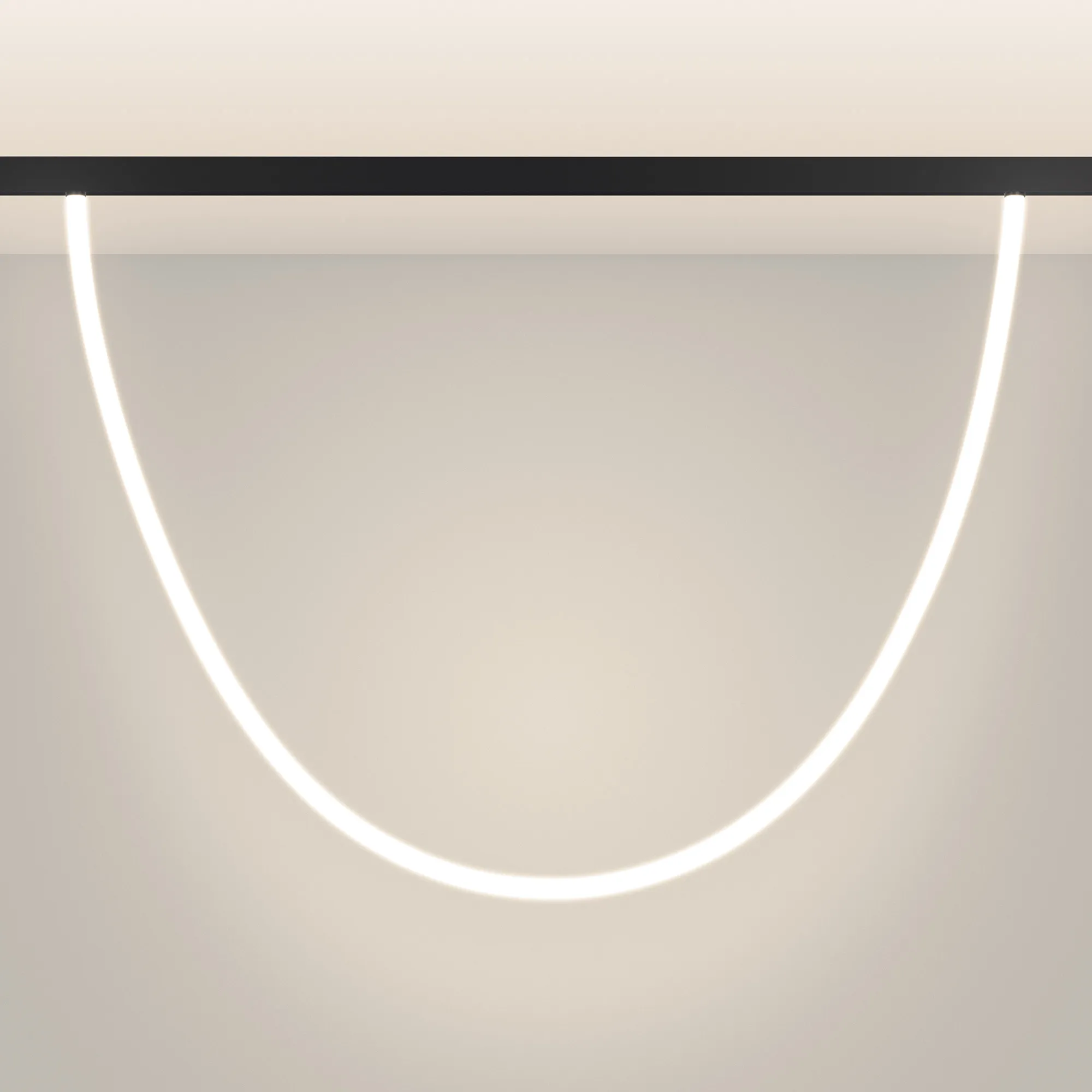Светильник гибкий для магнитных треков серии ORIENT с управлением DALI. Мощность 35 Вт, св. поток 2120 лм, 60 лм/Вт, теплый 3000 K, CRI>90, угол 360°, напряжение питания 48 В. Матовый белый фигурный корпус из силикона с черными креплениями. Размер: диаметр 25 мм, длина 2500 мм. Монтаж на магнитный трек ORIENT. Адаптеры в комплекте.
