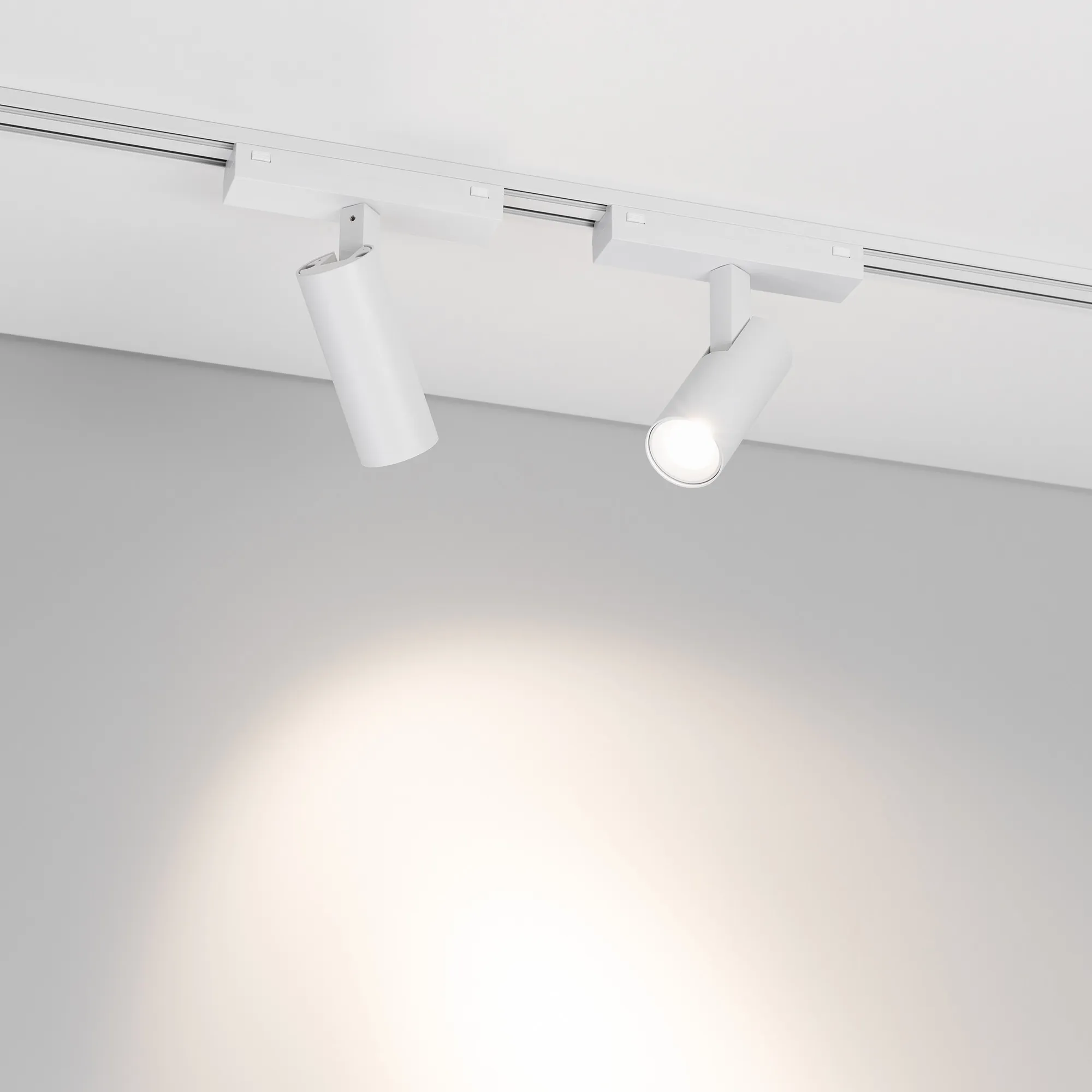 Светильник для магнитных треков MAG-VIBE. Мощность 8 Вт, св. поток 635 лм, 79 лм/Вт, дневной 4000 K, CRI>90, угол 24°, напряжение питания 48 В. Белый фигурный корпус из алюминия, экран PMMA, степень защиты IP20.Размеры LxWxH 122x35x81 мм. Длина светоизлучающего модуля 85мм. Монтаж на трек MAG-VIBE. Пульсация <1%.