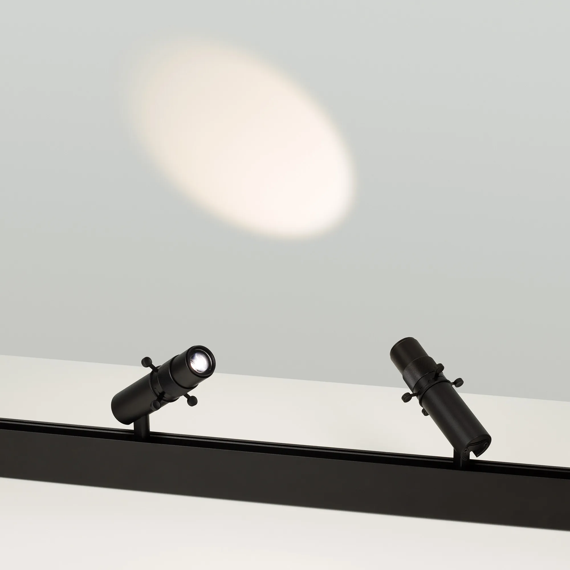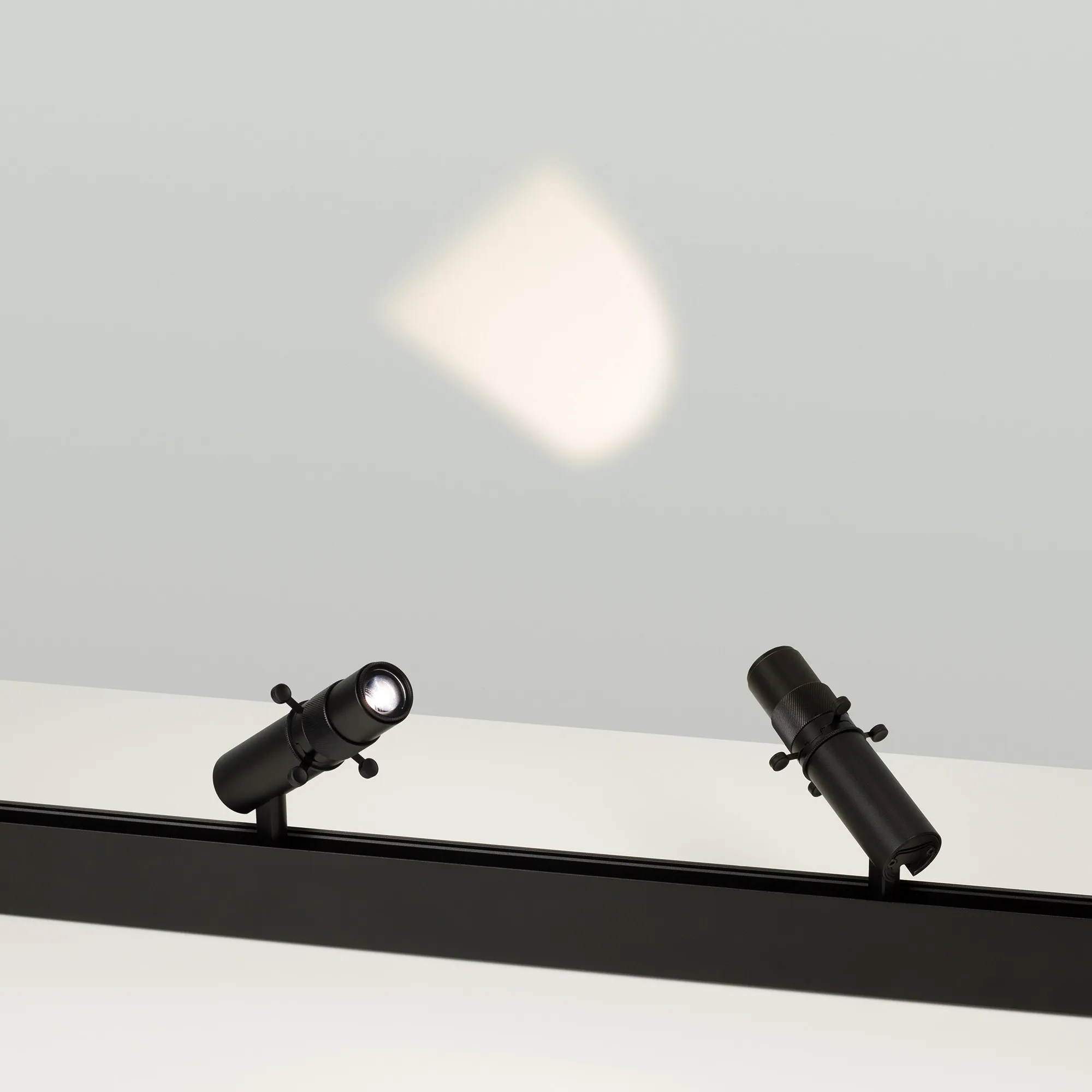 Светильник с кадрируемой оптикой и изменяемым углом для магнитных треков MAG-ORIENT шириной 26 мм. Мощность 6 Вт, св. поток 60-100 лм, 17 лм/Вт, теплый 3000 K, CRI>98, угол 19-29°, напряжение питания 48 В. Черный фигурный корпус из металла, степень защиты IP20. Размеры LxWxH 126x35x195 мм. Длина светоизлучающего модуля 140мм. Монтаж на трек MAG-ORIENT. Пульсация <1%.