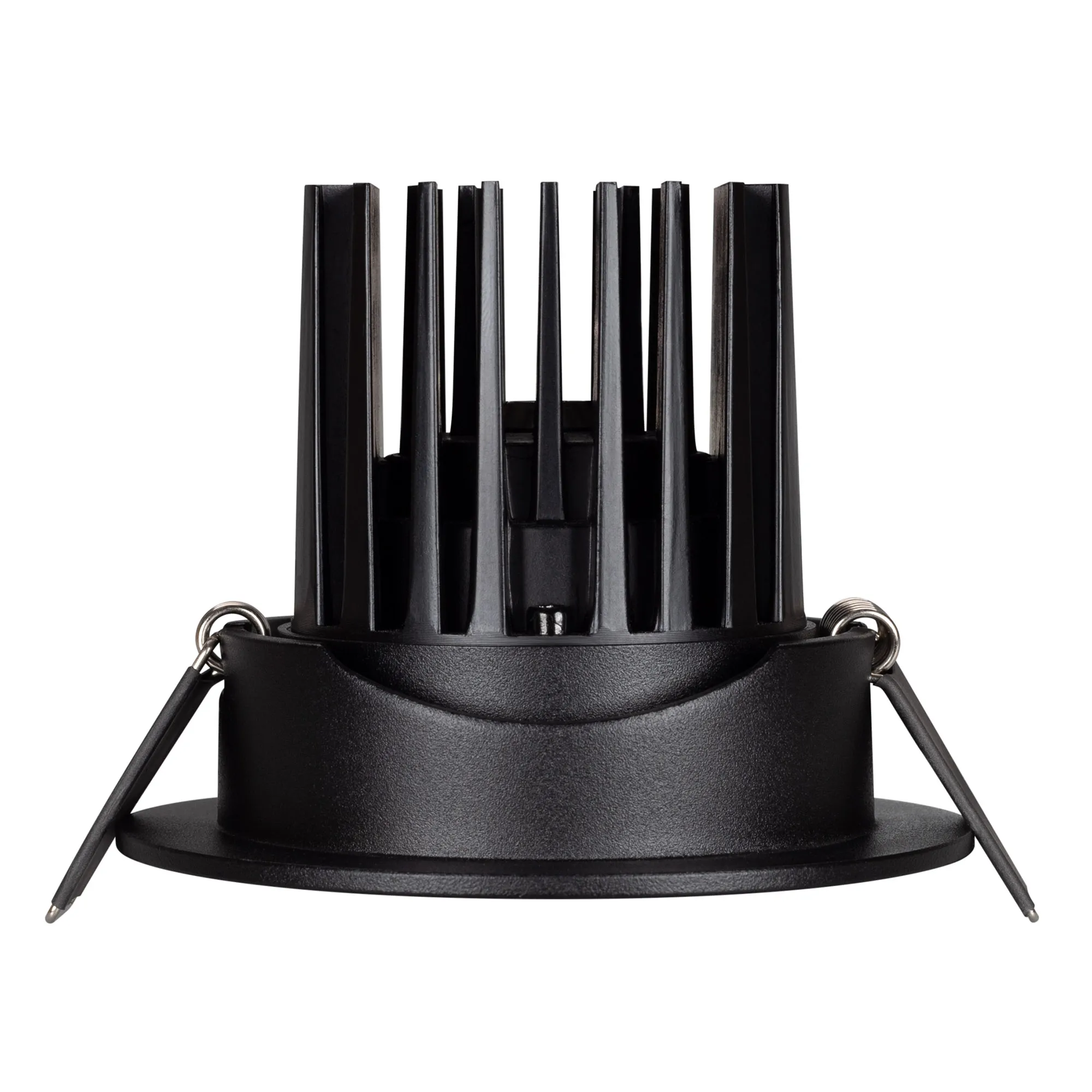 Встраиваемый поворотный светильник даунлайт. Мощность 10 Вт, св. поток 750лм, 75 лм/Вт, тёплый 3000 K, CRI>90, угол 36°, напряжение питания 230 В. Чёрный круглый корпус из алюминия, экран PMMA, степень защиты IP54. Размер: диаметр 94 мм, высота 75 мм. Монтаж встраиваемый, установочное отверстие: диаметр 77 мм. Драйвер IP54, 20-40 В, 250 мА, пульсация <1%.