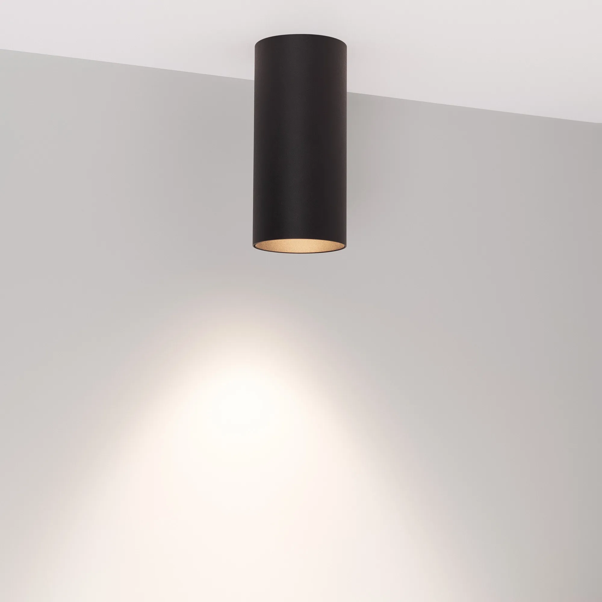 Накладной светильник. Мощность 12 Вт, св. поток 1200 лм, 100 лм/Вт, дневной 4000 K, CRI>90, угол 36°, напряжение питания 230 В. Чёрный круглый корпус из алюминия, экран PMMA, степень защиты IP40. Размер: диаметр 60 мм, высота 130 мм. Монтаж накладной. Встроенный драйвер 27-42 В, 300 мA, пульсация <1%.