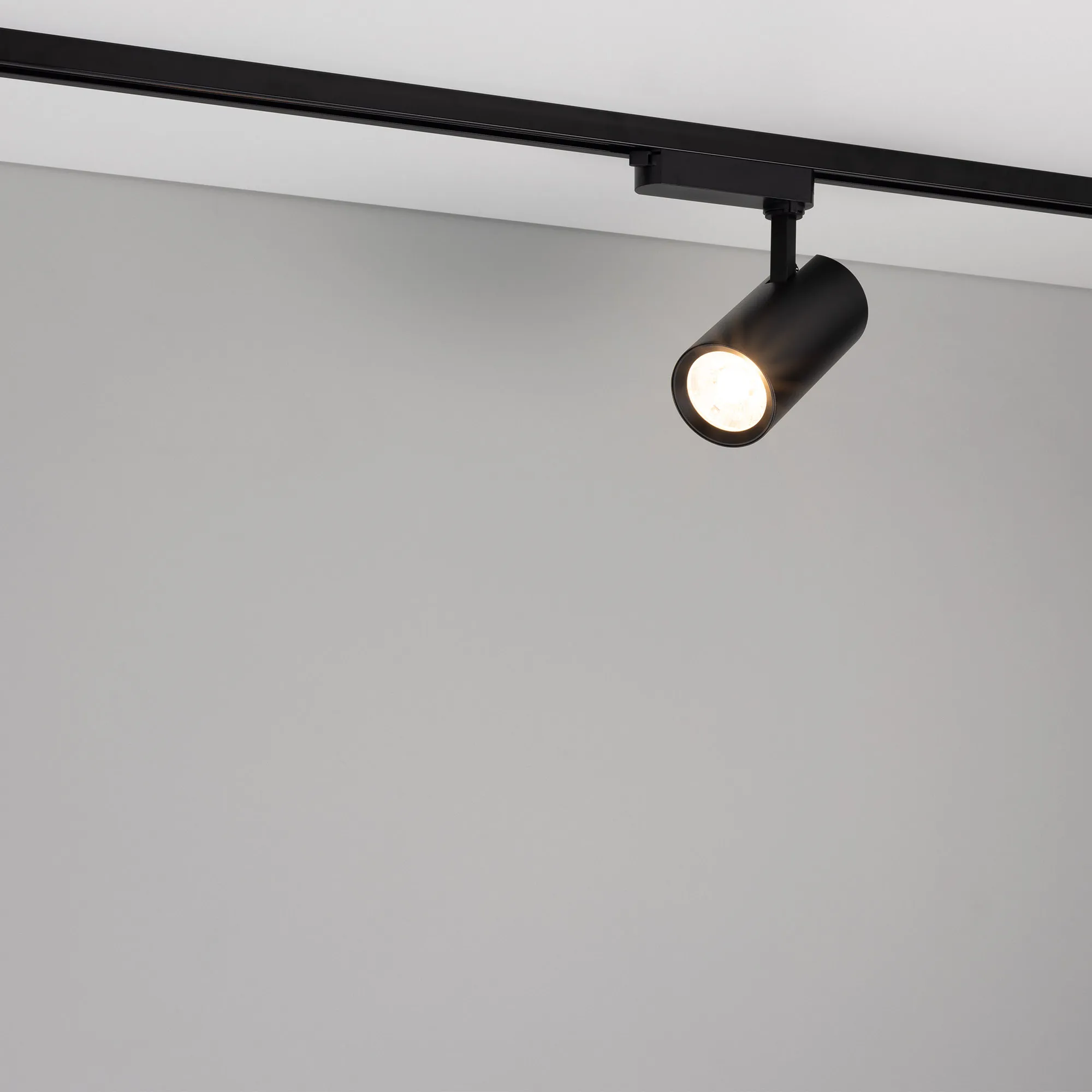 Светильник для треков/шин 2 провода. Мощность 20 Вт, св. поток без решетки honeycomb 2000 лм, 100 лм/Вт, с решеткой honeycomb 1320 лм, 66 лм/Вт, теплый 3000 K, CRI>90, угол 36°, напряжение питания 230 В. Черный круглый корпус из алюминия, материал линзы PMMA, степень защиты IP20. Размер: диаметр 74 мм, длина световой части 154 мм. Монтаж на трек 1-фазный. Драйвер встроенный 500 мА 25-40 В, пульсация <5%.