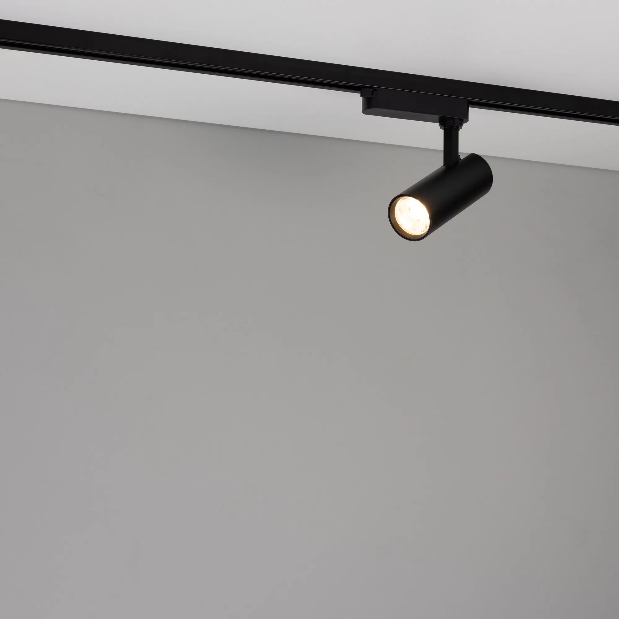 Светильник для треков/шин 2 провода. Мощность 15 Вт, св. поток без решетки honeycomb 1500 лм, 100 лм/Вт, с решеткой honeycomb 990 лм, 66 лм/Вт, тёплый 3000 K, CRI>90, угол 55°, напряжение питания 230 В. Черный круглый корпус из алюминия, материал линзы PMMA, степень защиты IP20. Размер: диаметр 60 мм, длина световой части 141 мм. Монтаж на трек 1-фазный. Драйвер встроенный 350 мА 25-40 В, пульсация <5%.
