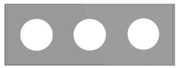 Рамка стеклянная на 3 поста, под встраиваемый механизм. Вырез под функциональную часть круг. Цвет - серый. Ориентации монтажа - горизонтальная.