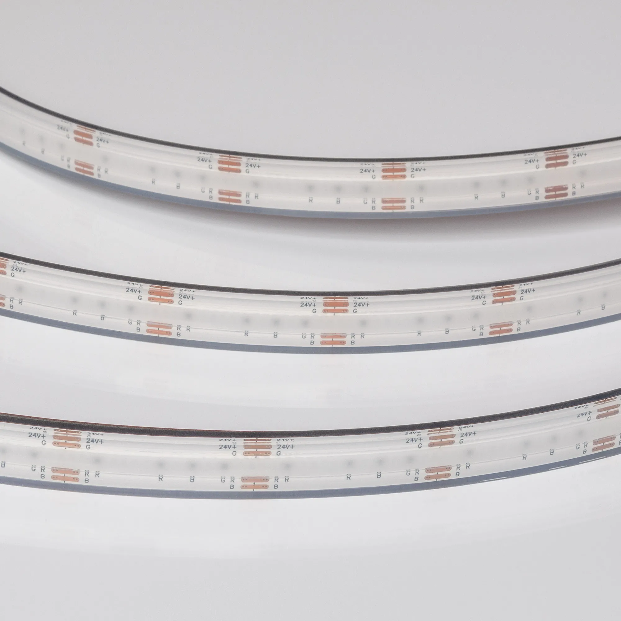 Светодиодная герметичная лента сплошной засветки без видимых светодиодов серии CSP X540, IP68 (PFS - полная силиконовая экструзия). Светодиоды CSP, 540 шт/м (2700 шт на 5 м), белая плата шириной 10 мм. Цвет RGB, угол 160°. Питание 24 В, мощность 15 Вт/м (75 Вт на 5 м). Размеры 5000x12x5 мм. Мин. отрезок 33.33 мм. Цена за 1 м.