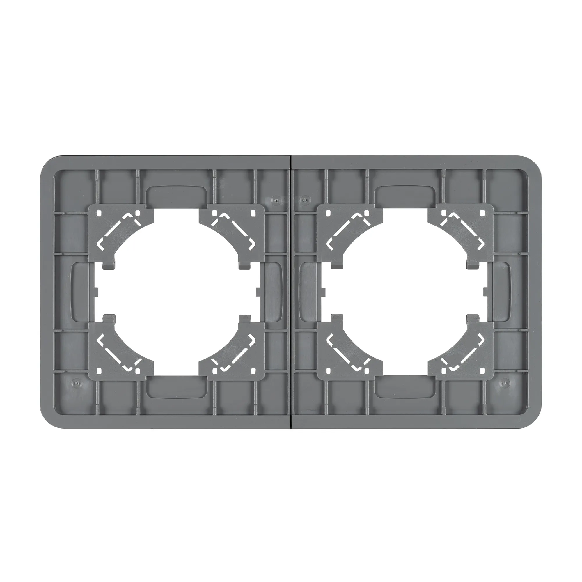 Рамка стеклянная на 2 поста, под встраиваемый механизм. Цвет - серый. Среднего уровня герметичности IP20. Ориентация монтажа - горизонтальная (основным ориентиром служат посадочные выступы для накладки механизма).