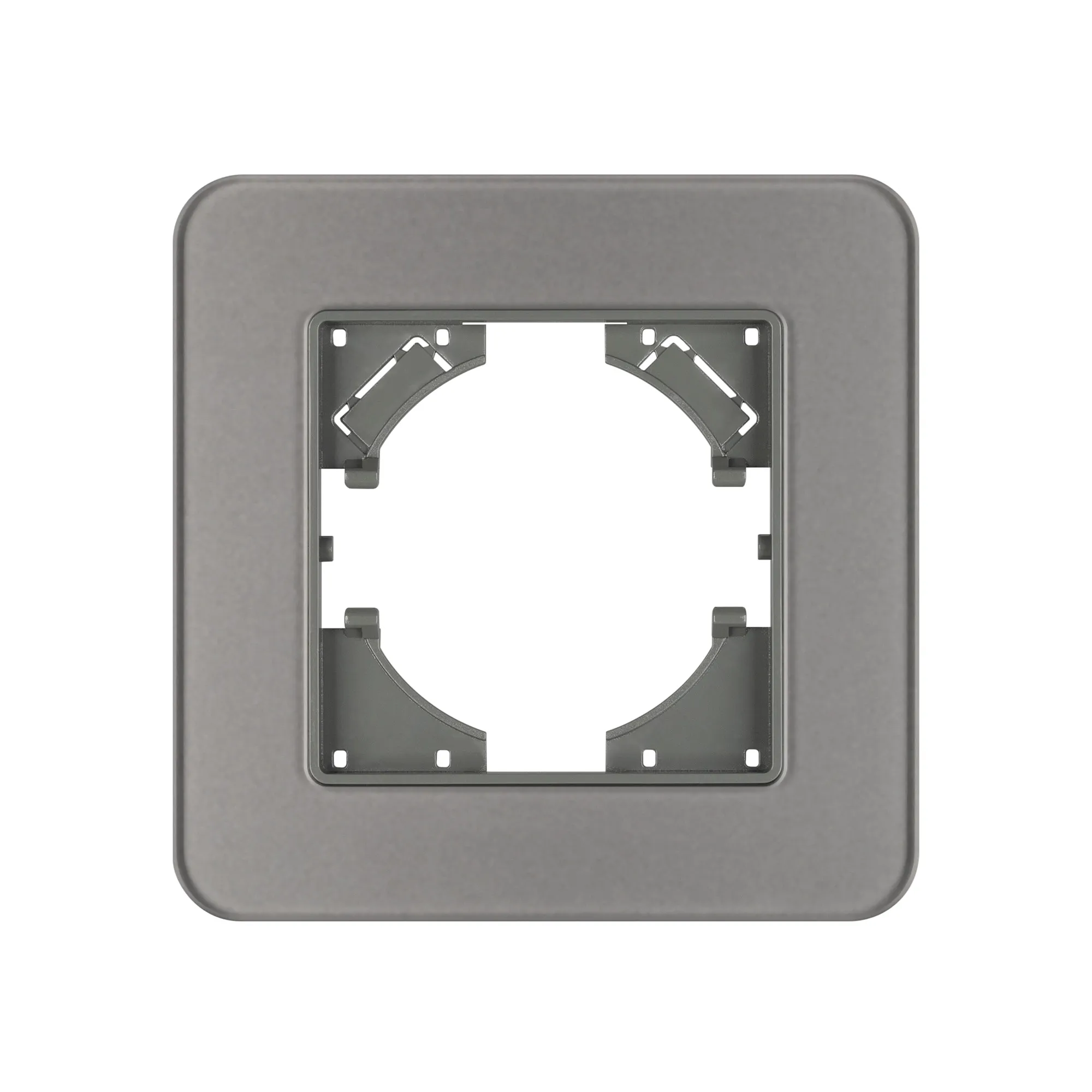 Рамка стеклянная на 1 пост, под встраиваемый механизм. Цвет - серый с Soft-Touch покрытием. Среднего уровня герметичности IP20. Ориентация монтажа - горизонтальная (основным ориентиром служат посадочные выступы для накладки механизма).