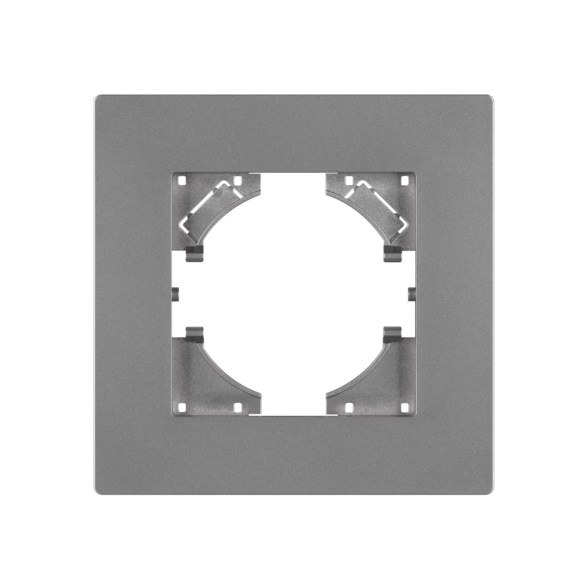 Рамка пластиковая на 1 пост, под встраиваемый механизм. Цвет - серый. Среднего уровня герметичности IP20. Ориентация монтажа - горизонтальная (основным ориентиром служат посадочные выступы для накладки механизма).