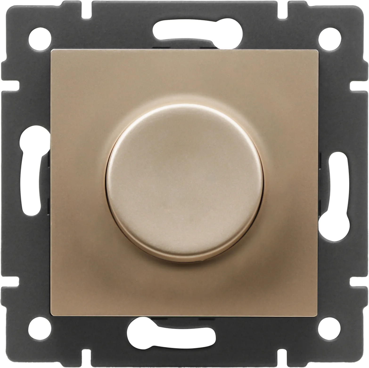Механизм регулировки света на 1 пост. Цвет - золотой. Без фронтальной рамки. Уровень пылевлагозащиты IP20. Механизм устанавливается в стандартный круглый подрозетник. Максимальная нагрузка 500 Вт только для ламп накаливания и галогенных, 150 Вт только для энергосберегающих и светодиодных ламп. Габаритные размеры: длина 71 мм, ширина 71 мм, высота 52 мм. Гарантийный срок 10 лет.