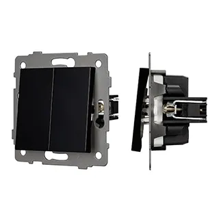Механизм выключателя света клавишный на 1 пост 2 возвратные клавиши. Цвет - черный. Без фронтальной рамки. Уровень пылевлагозащиты IP20. Выключатель устанавливается в стандартный круглый подрозетник.
