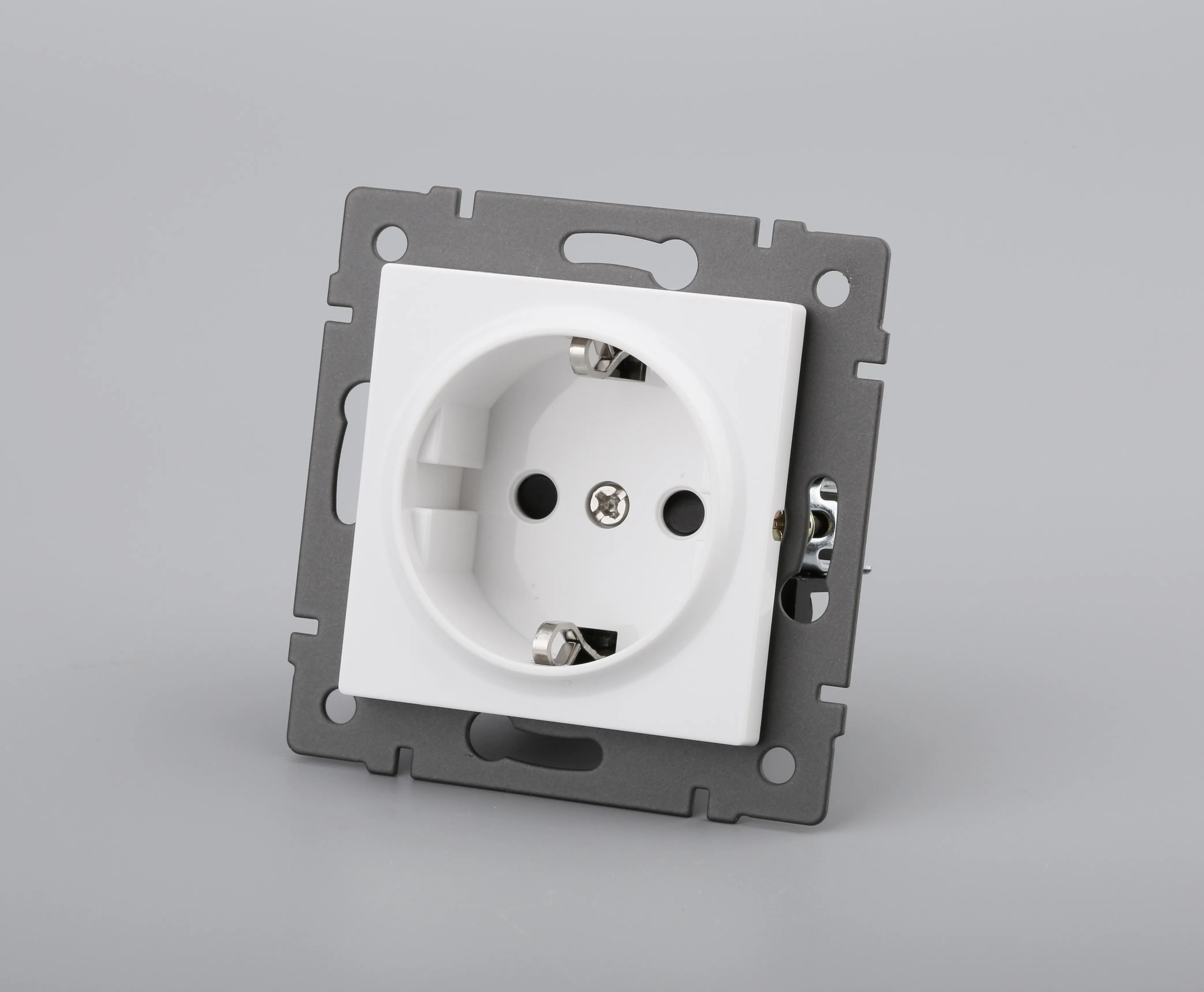 Механизм розетки с заземлением на 1 пост. Цвет - белый. Без фронтальной рамки. Уровень пылевлагозащиты IP20. Устанавливается в стандартный подрозетник.