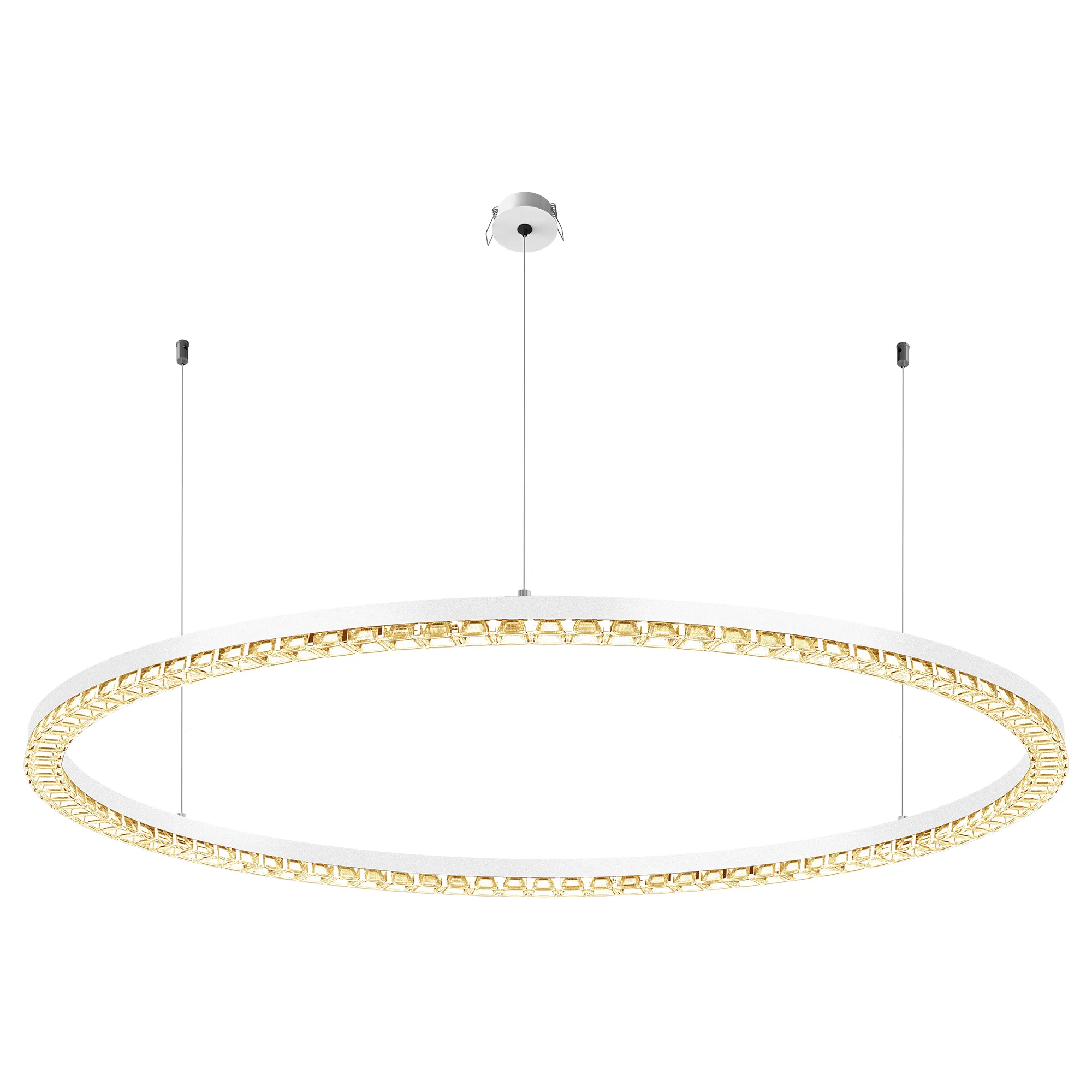 Под заказ. Подвесной светильник. Мощность 80 Вт, св. поток 6370 лм, 80-95 лм/Вт, теплый 3000 K, CRI>90, угол 45°, напряжение питания 230 В. Белый круглый корпус из алюминия, экран PMMA, степень защиты IP20. Размер: диаметр 1250 мм, высота 34 мм, ширина профиля 30 мм, размер чаши: диаметр 65 мм, высота 26 мм. Монтаж подвесной, длина подвеса 1200 мм, тип чаши встраиваемый, диаметр установочного отверстия чаши 60 мм. Драйвер (2 шт.) 9-38 В, 1050 мА. Пульсация <0,3 %.