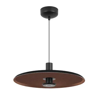 Подвесной светильник. Мощность 12 Вт, св. поток 597 лм, 49 лм/Вт, теплый 2700 K, CRI>94, угол 36°, напряжение питания 230 В. Черный фигурный корпус из переработанного фетра с внутренней поверхностью цвета мокко, линза-рассеиватель из PMMA, степень защиты IP20. Размер: диаметр 350 мм, высота 145 мм. Монтаж подвесной, длина подвеса 2000 мм, регулируемая. В комплекте 2 вида чаш. Габариты чаши (встраиваемая) Ø80 х 23 мм, врезное отверстие Ø60 мм. Габариты чаши (накладная) Ø120 x 35 мм. Драйвер 59 В, 300 мА, пульсация <1%. Управление по TRIAC.