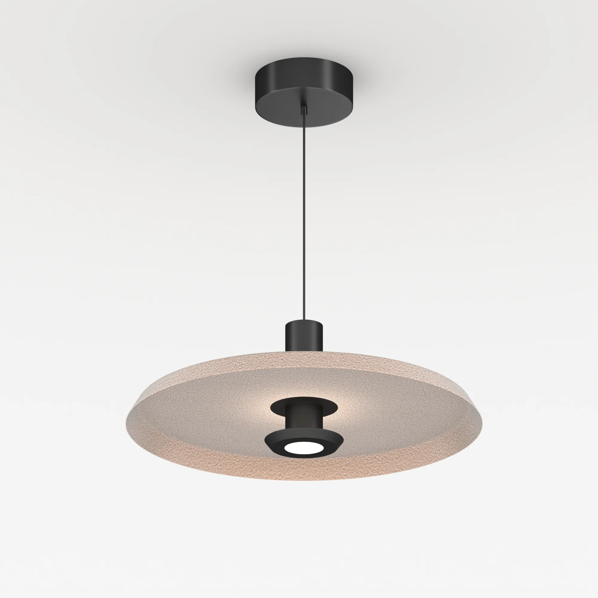 Подвесной светильник. Мощность 12 Вт, св. поток 768 лм, 64 лм/Вт, теплый 3000 K, CRI>94, угол 36°, напряжение питания 230 В. Бежевый фигурный плафон из переработанного фетра с кофейной внутренней поверхностью, линза-рассеиватель из PMMA, степень защиты IP20. Размер: диаметр 450 мм, высота 145 мм. Монтаж подвесной, длина подвеса 2000 мм, регулируемая. В комплекте 2 вида чаш. Габариты чаши (встраиваемая) Ø80 х 23 мм, врезное отверстие Ø60 мм. Габариты чаши (накладная) Ø120 x 35 мм. Драйвер 59В, 300 мА, пульсация <1%. Управление по TRIAC.